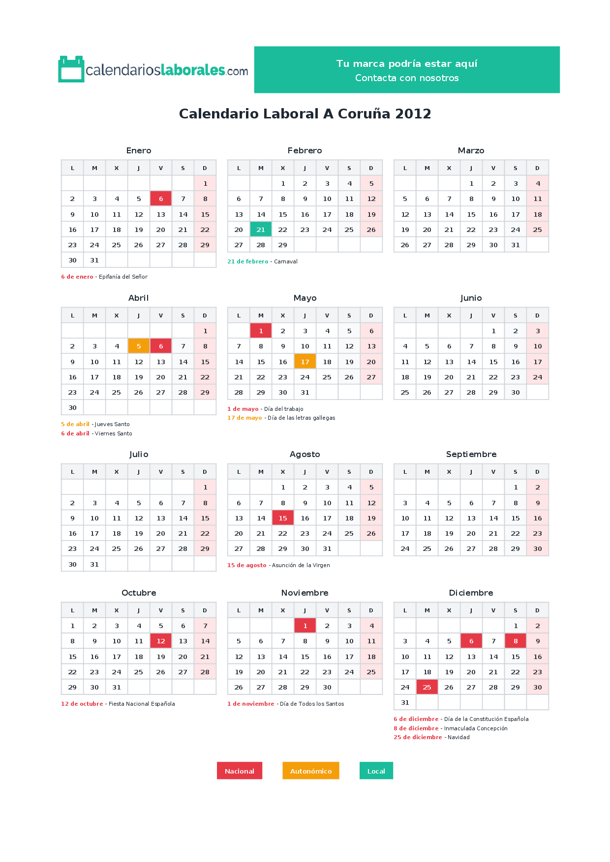 Calendario laboral A Coruña 2012
