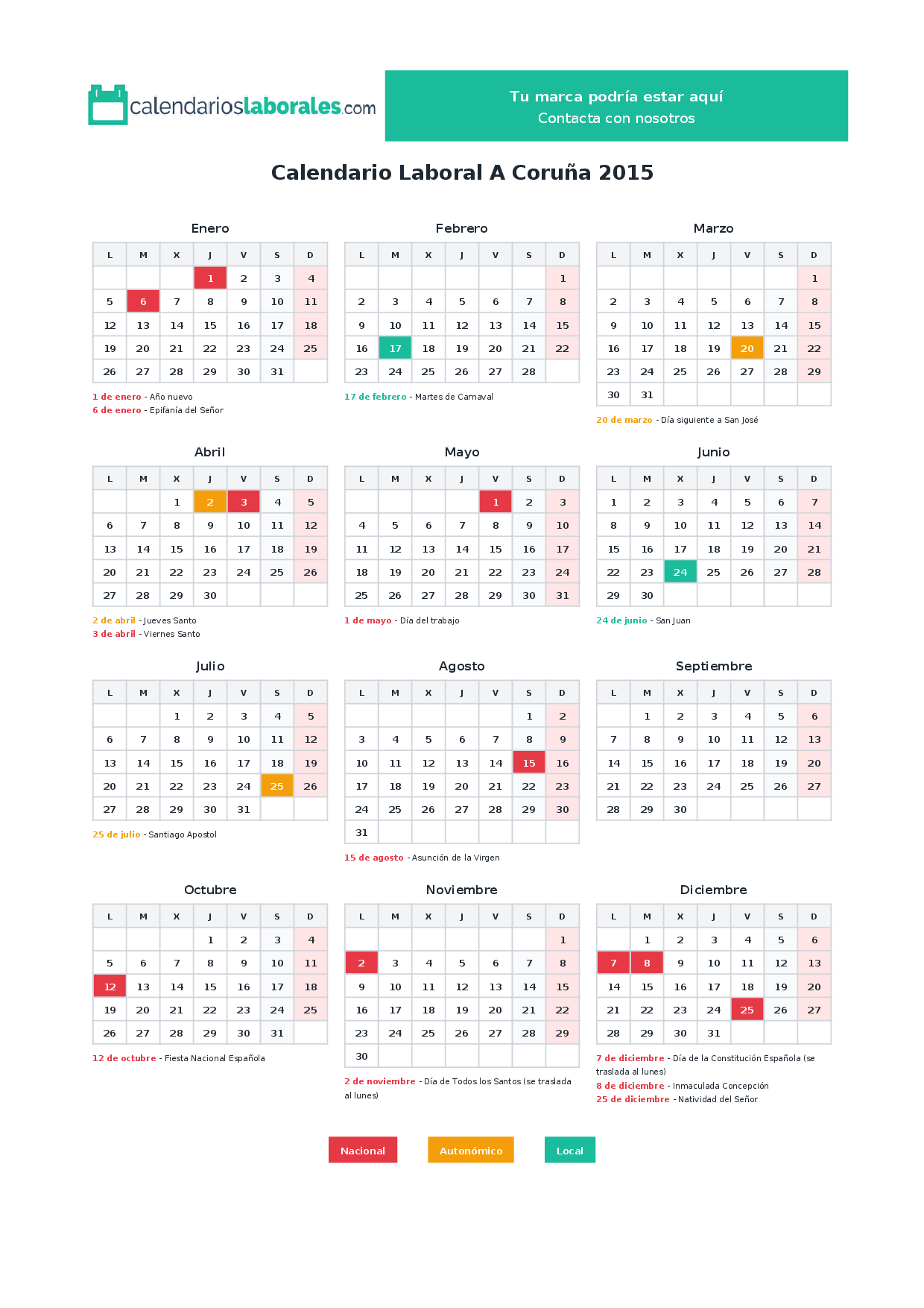 Calendario laboral A Coruña 2015
