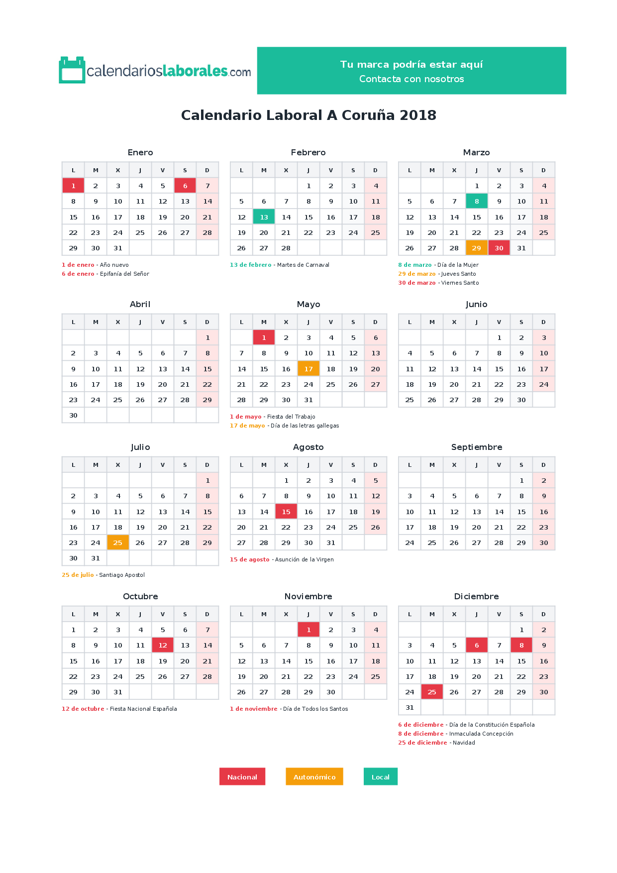 Calendario laboral A Coruña 2018