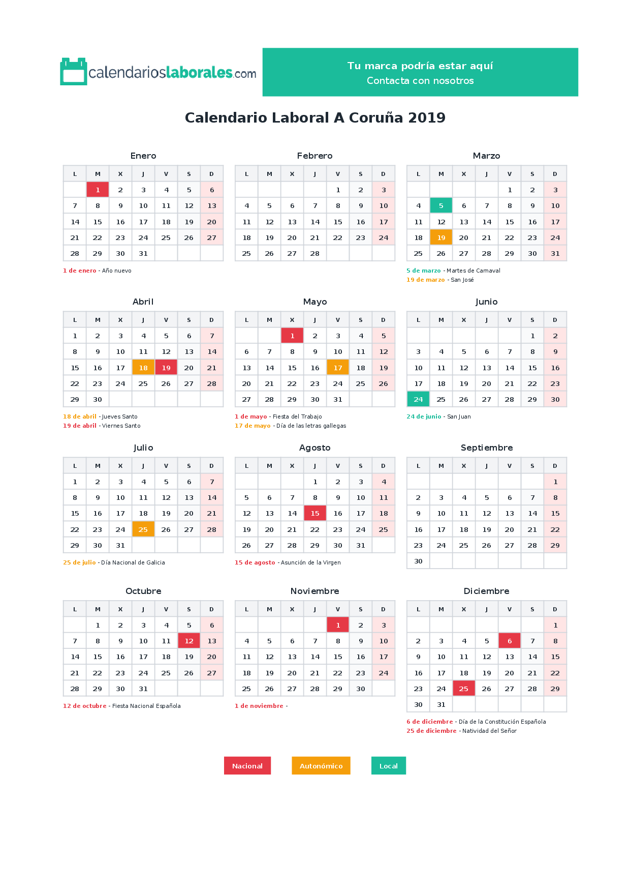 Calendario laboral A Coruña 2019