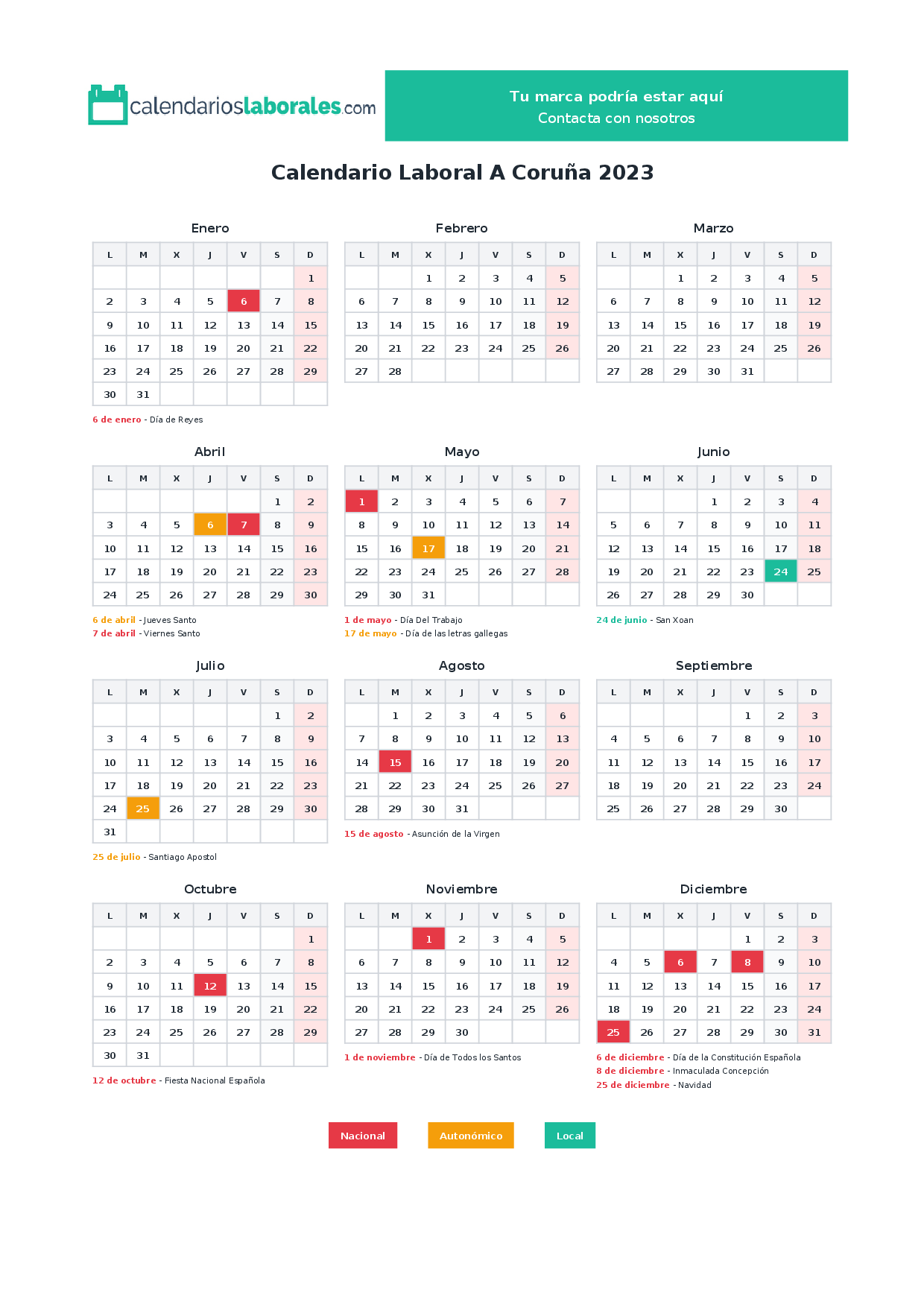 Calendario laboral A Coruña 2023