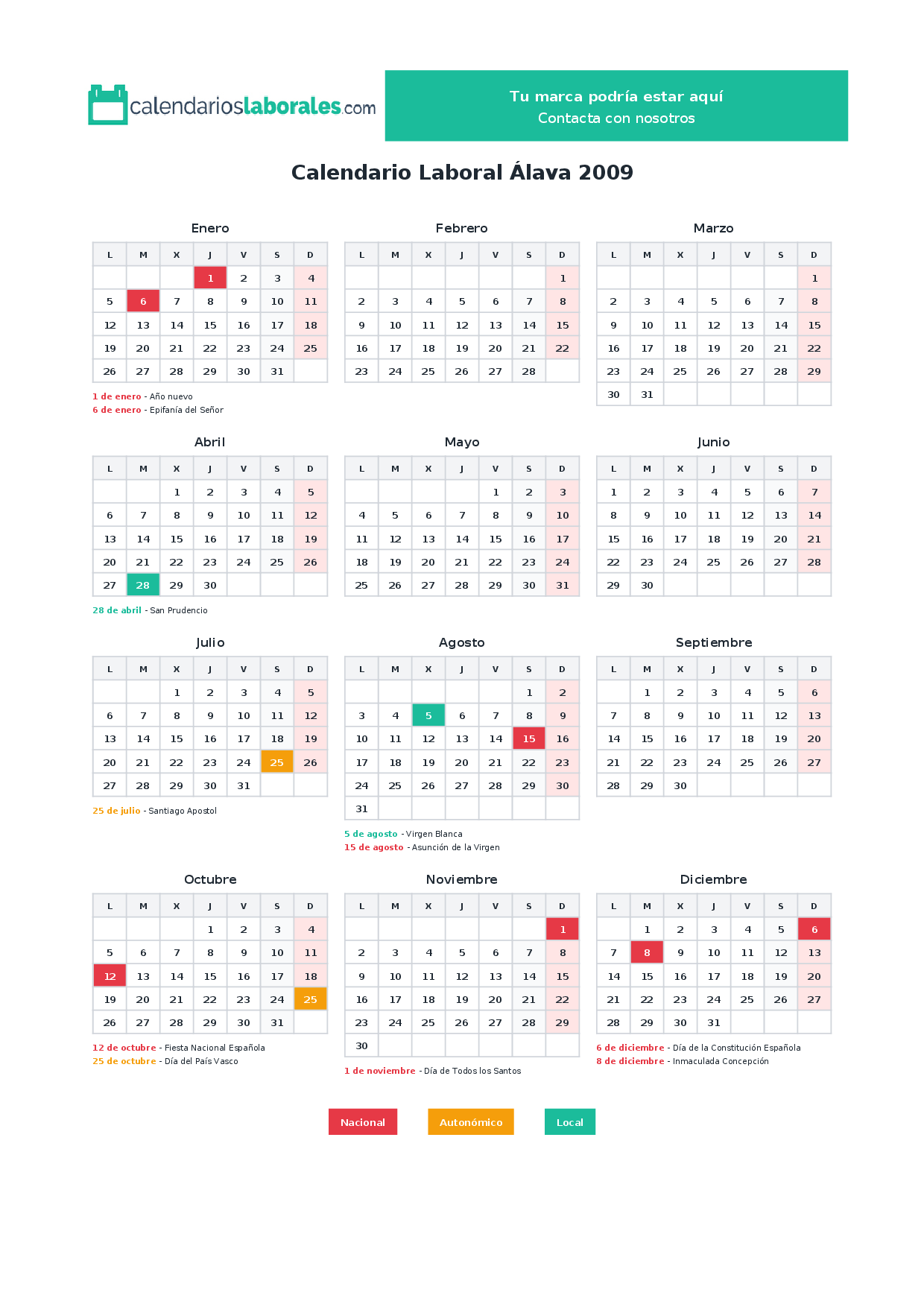 Festivos nacionales en Álava 2009