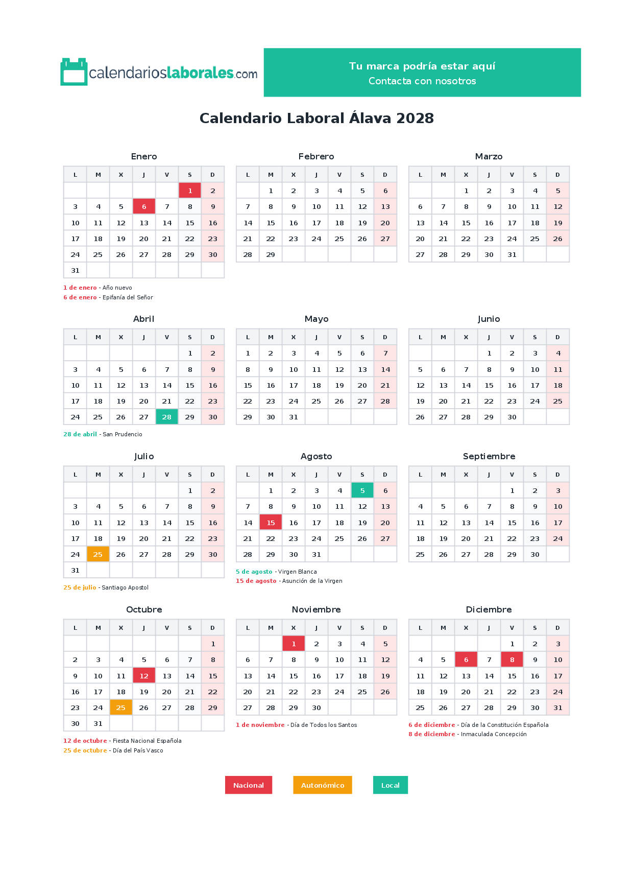 Calendario laboral Álava 2028