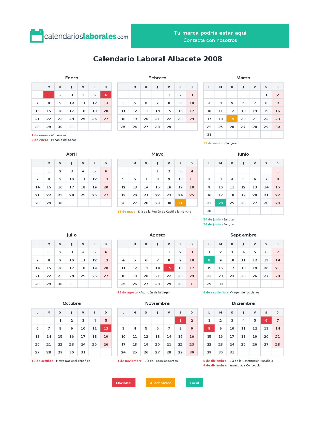 Calendario laboral Albacete 2008