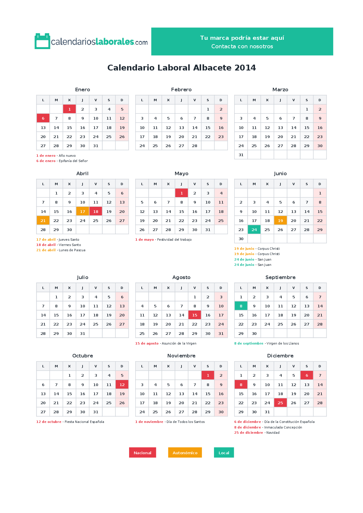 Calendario laboral Albacete 2014