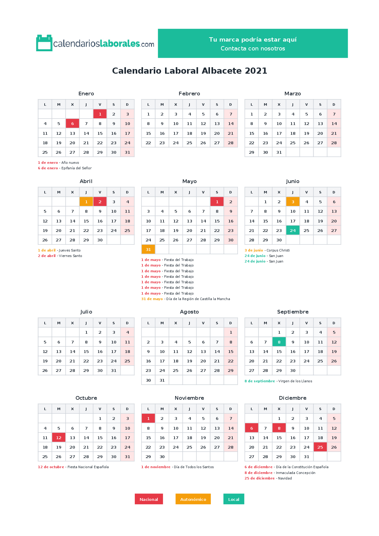 Calendario laboral Albacete 2021
