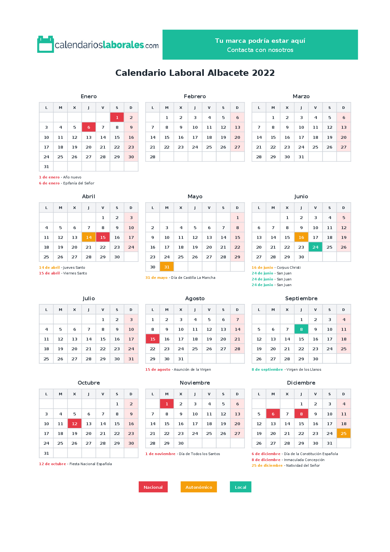 Calendario laboral Albacete 2022