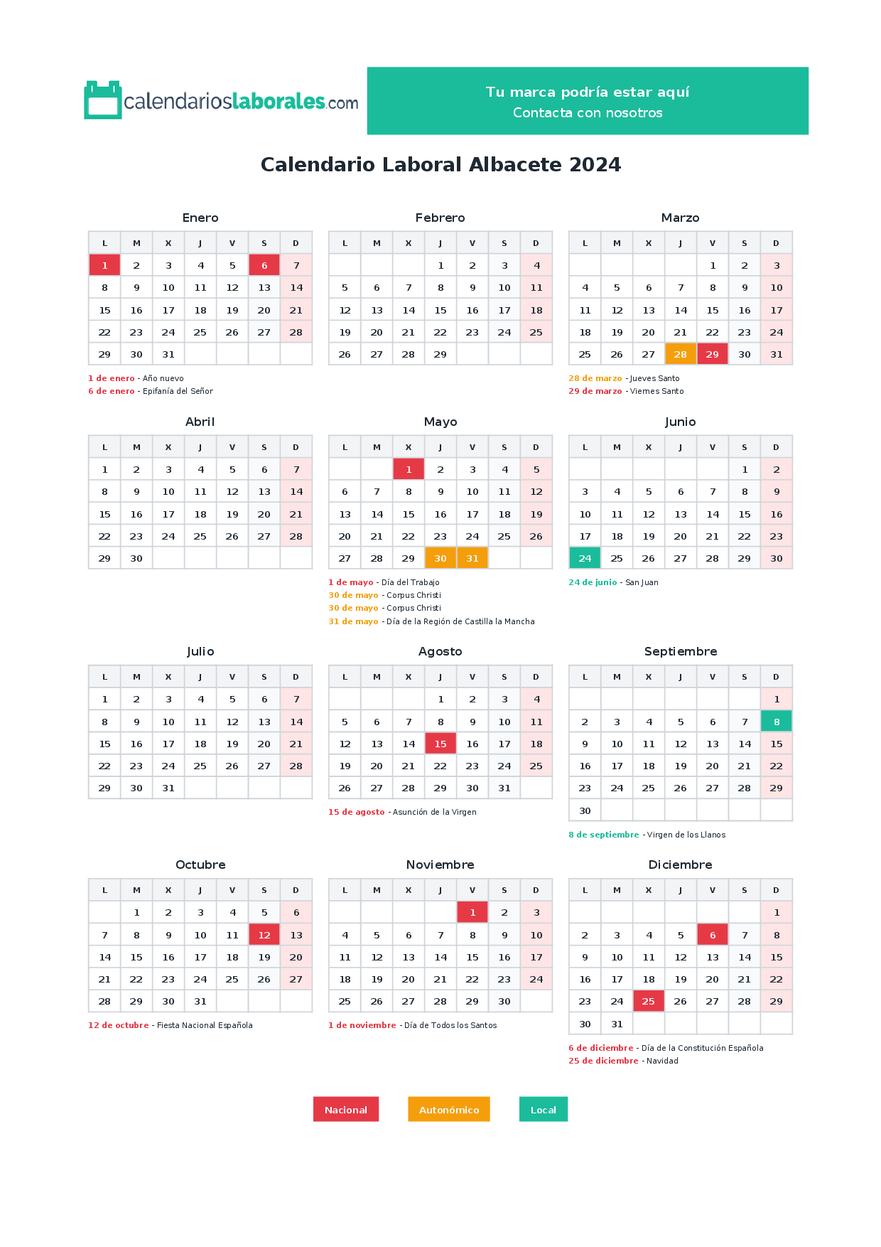 Calendario laboral Albacete 2024