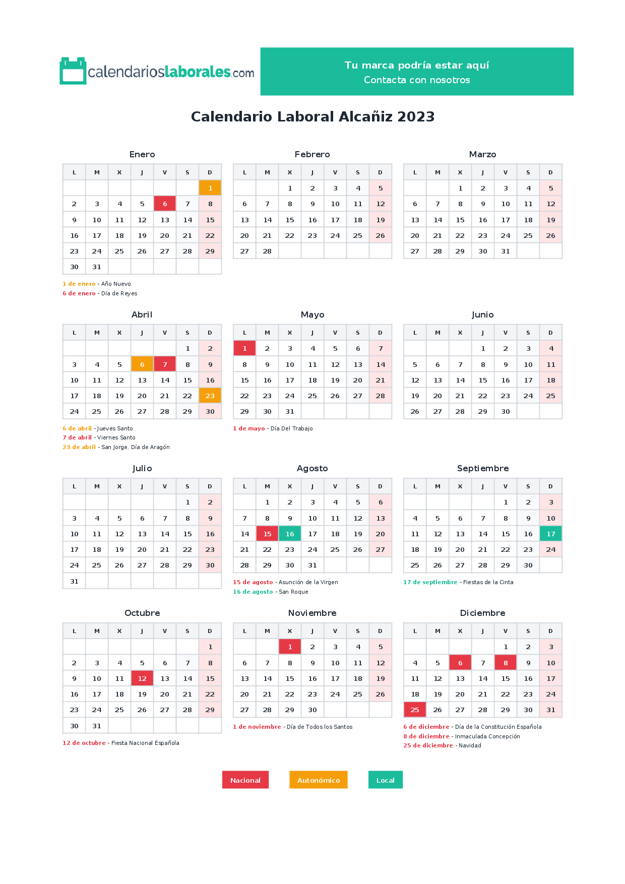 Calendario laboral Alcañiz 2023