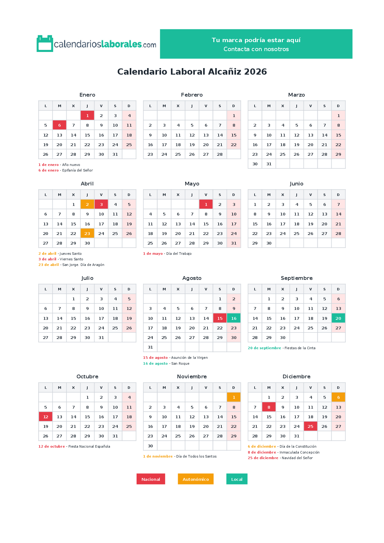 Calendario laboral Alcañiz 2026