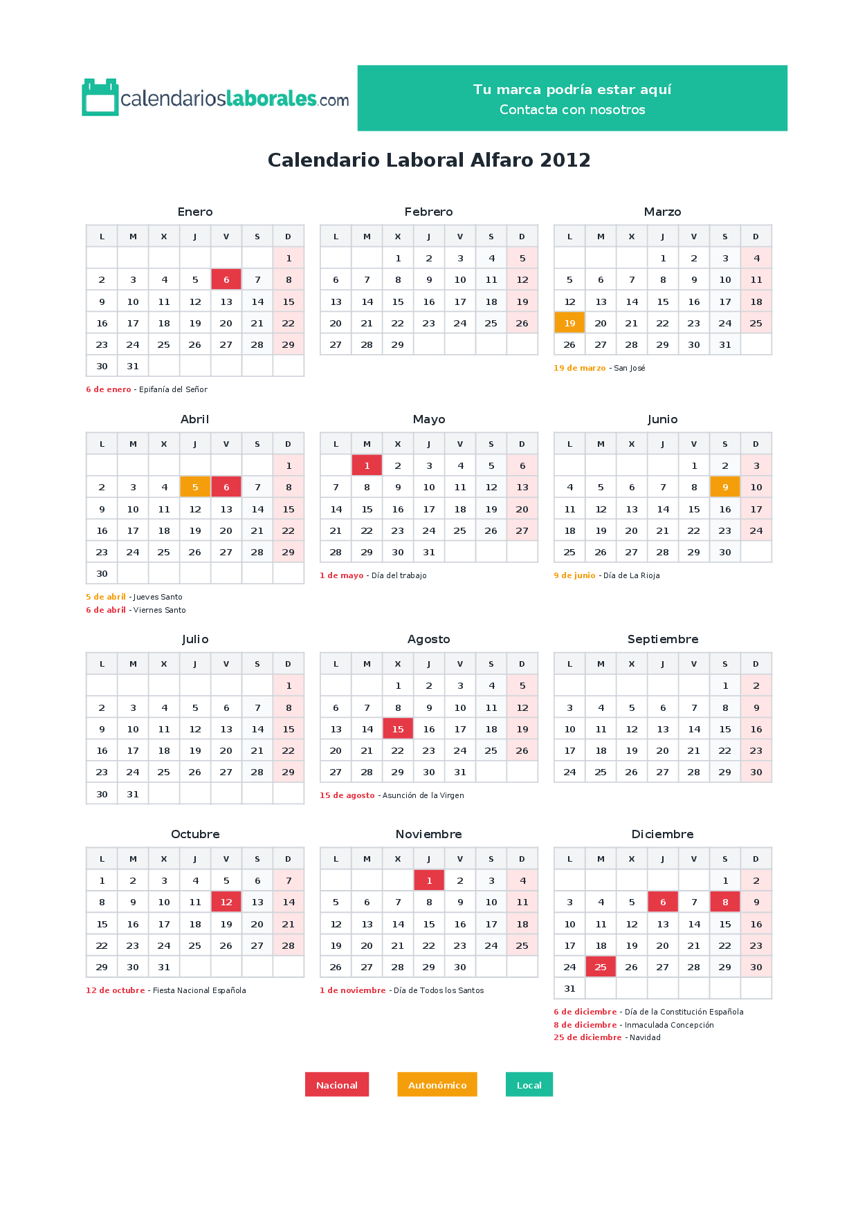 Calendario laboral Alfaro 2012