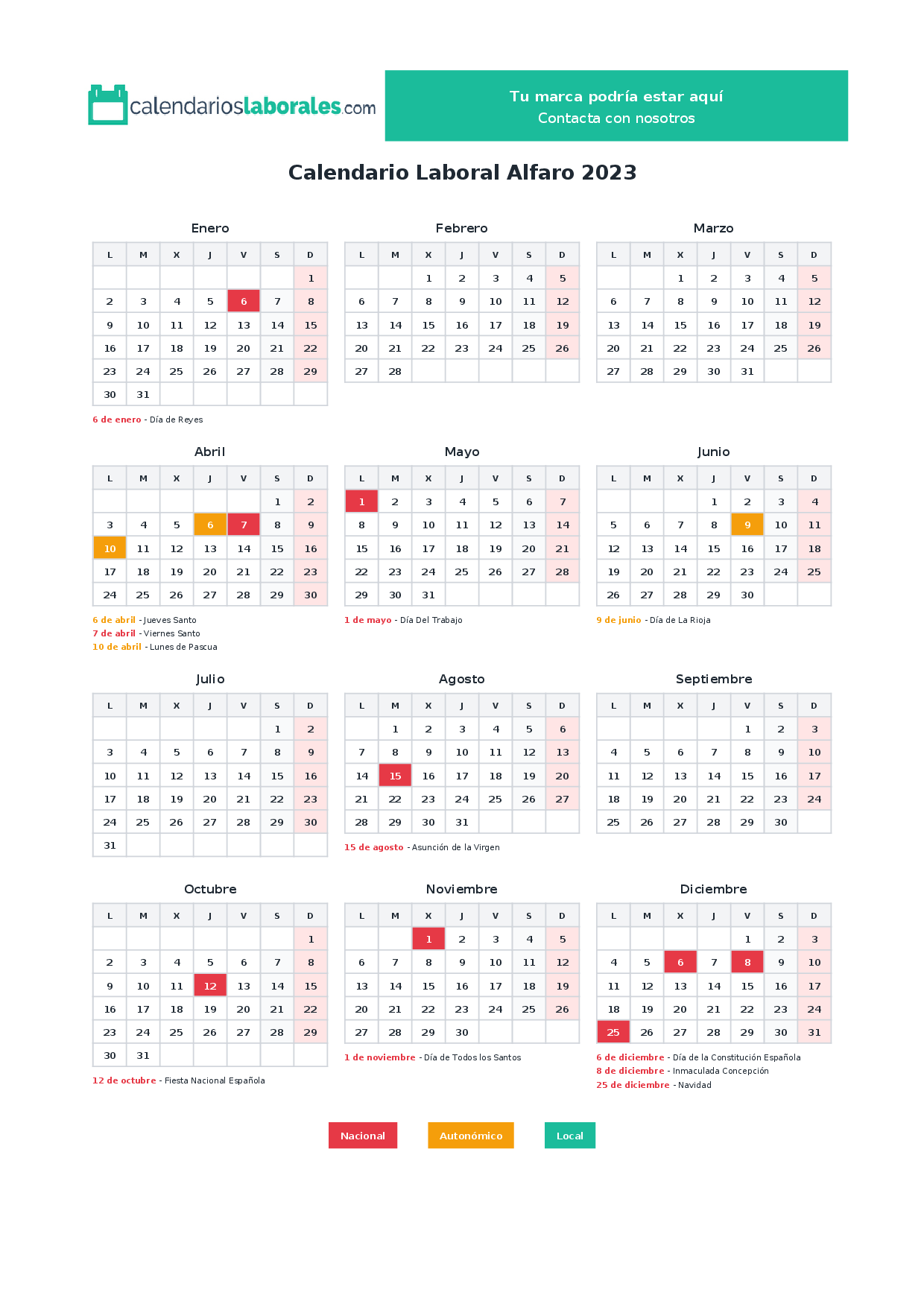 Calendario laboral Alfaro 2023