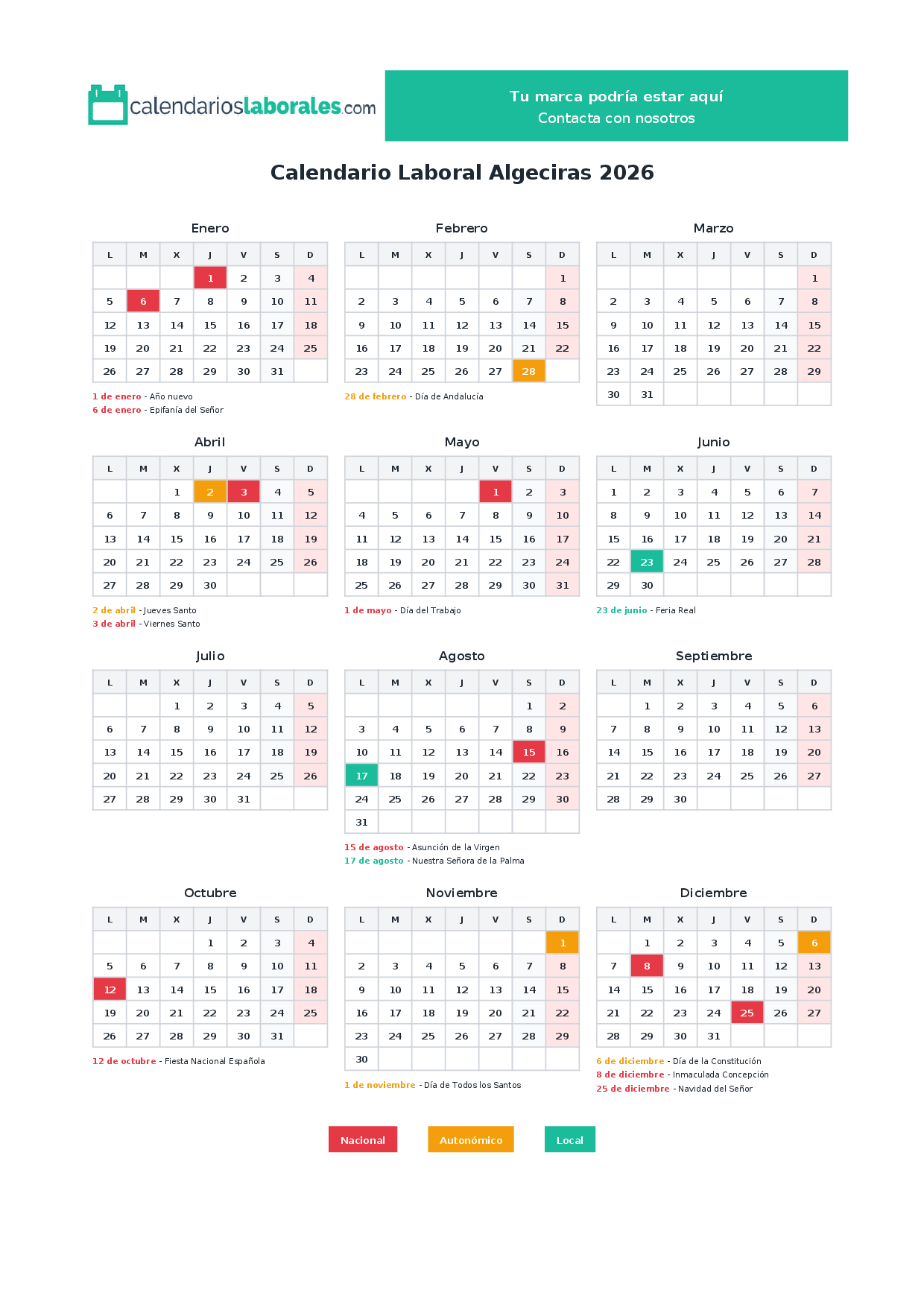 Además, el Ayuntamiento de Algeciras fija 2 festivos locales que completan el calendario laboral del municipio.