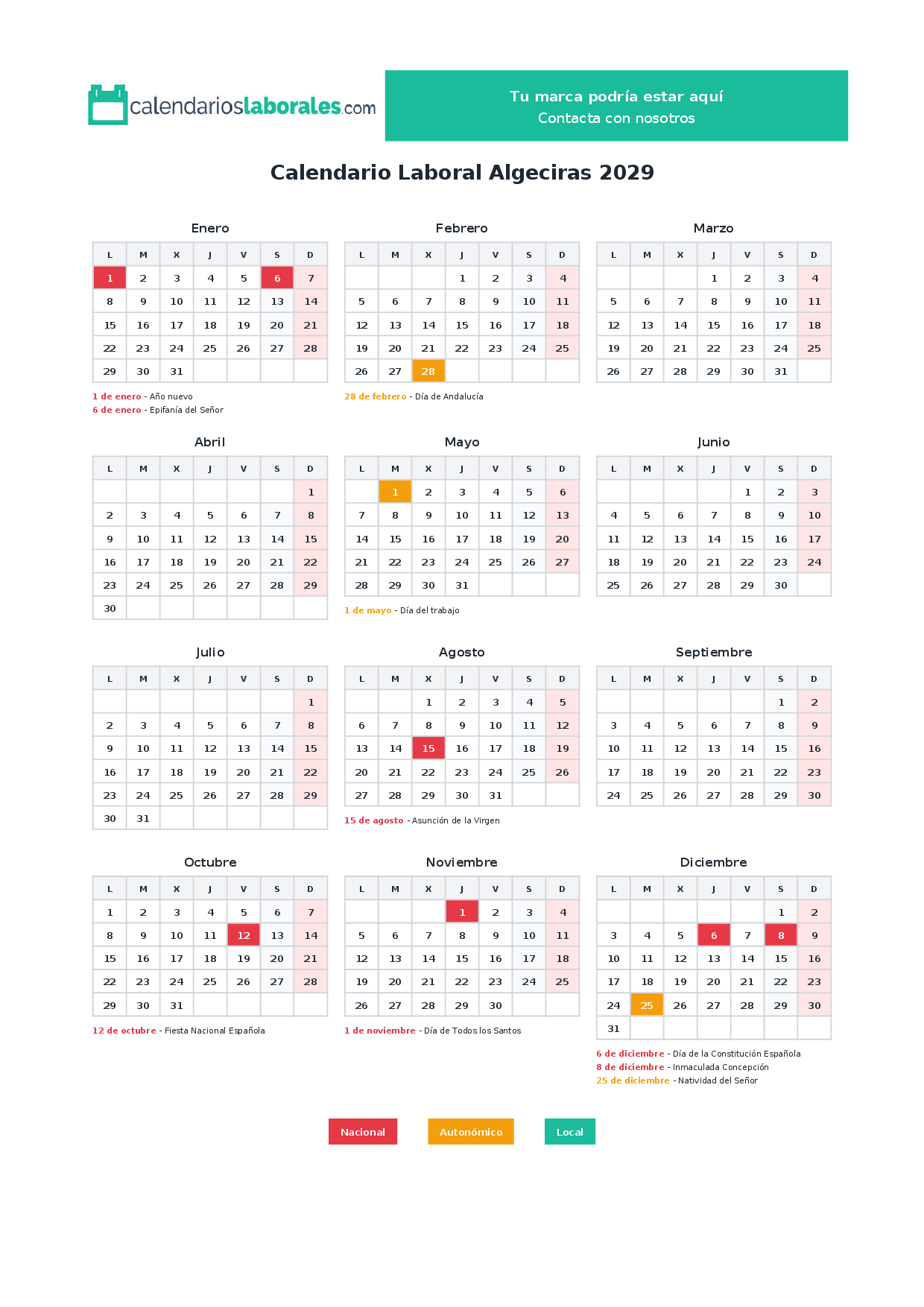 Calendario laboral Algeciras 2029