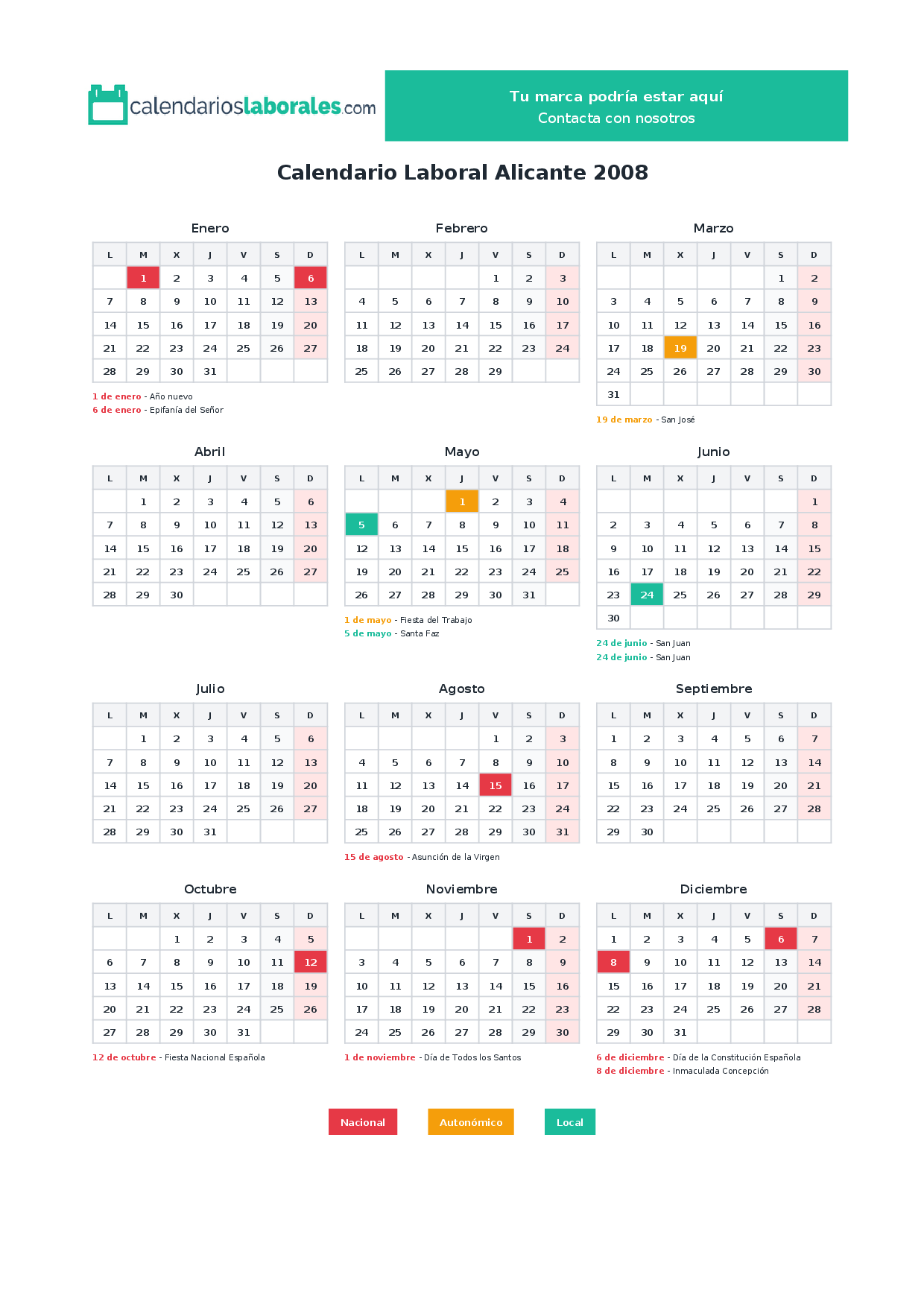 Calendario laboral Alicante 2008
