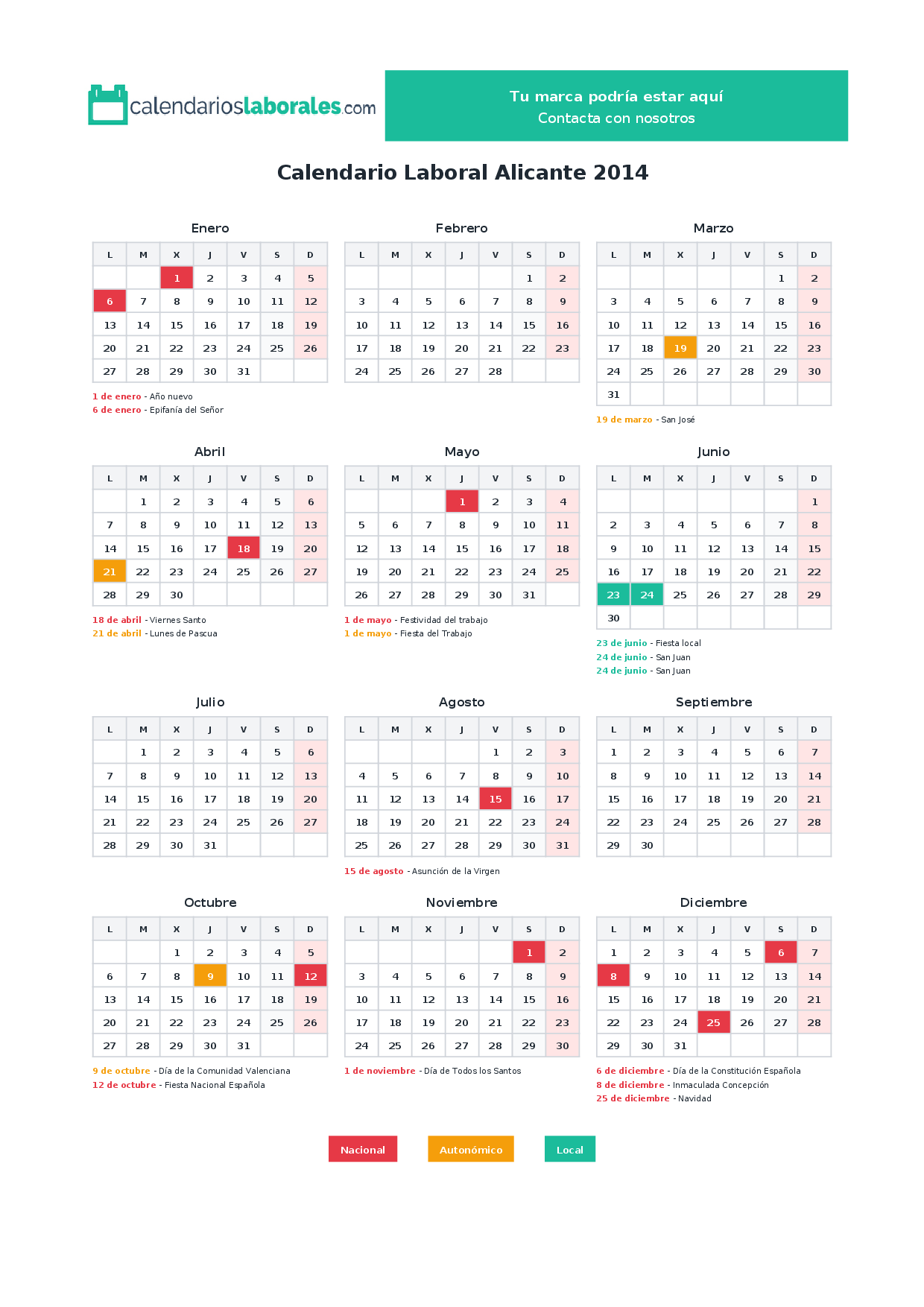 Calendario laboral Alicante 2014