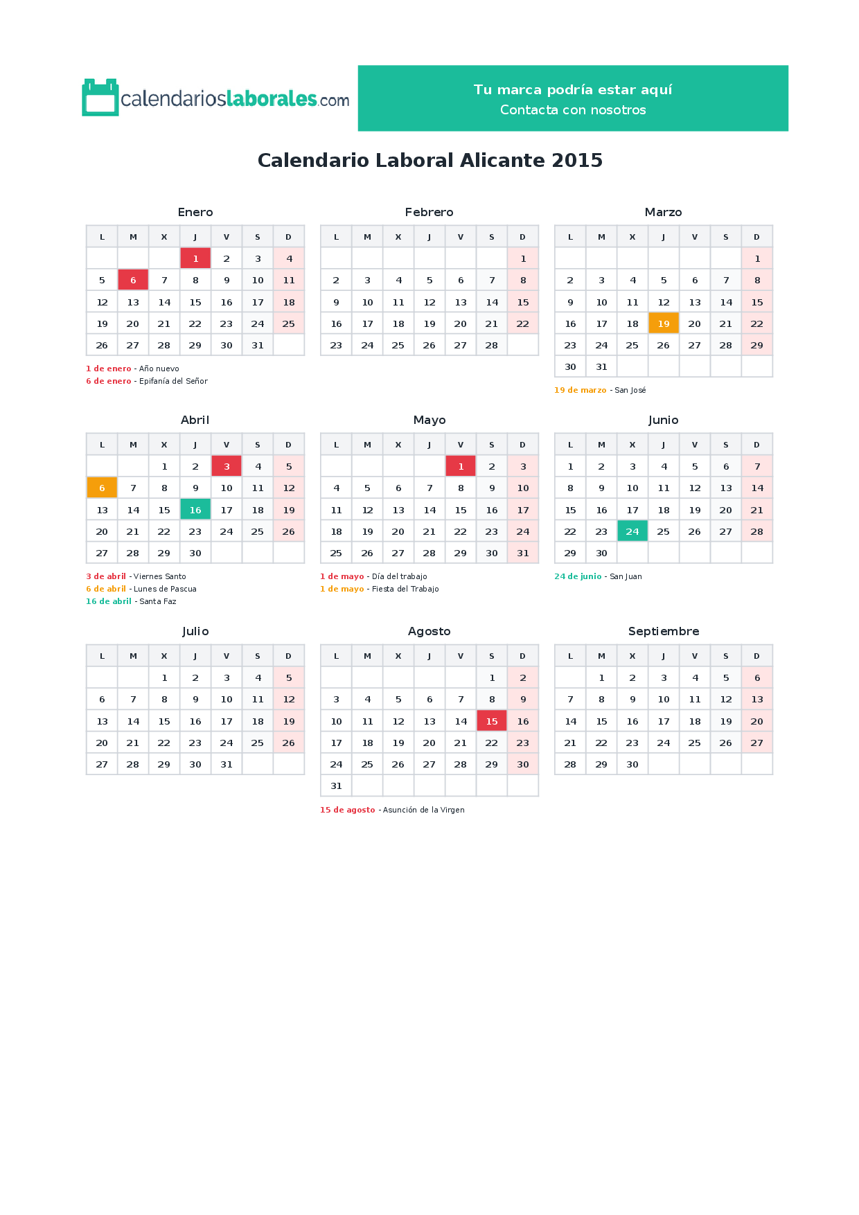 Calendario laboral Alicante 2015
