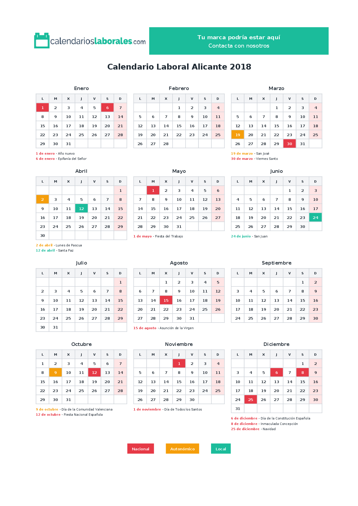 Puedes consultar también el calendario laboral completo de Comunidad Valenciana 2018 o el calendario laboral de España para conocer el detalle nacional.