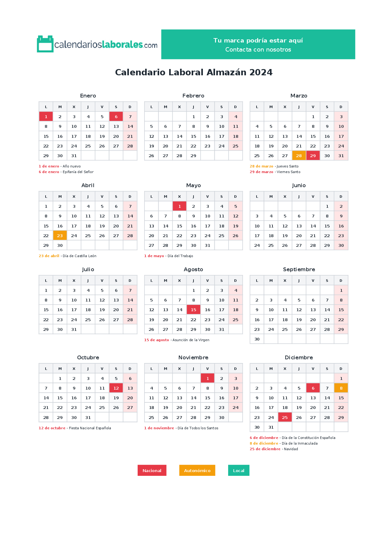 Calendario laboral Almazán 2024