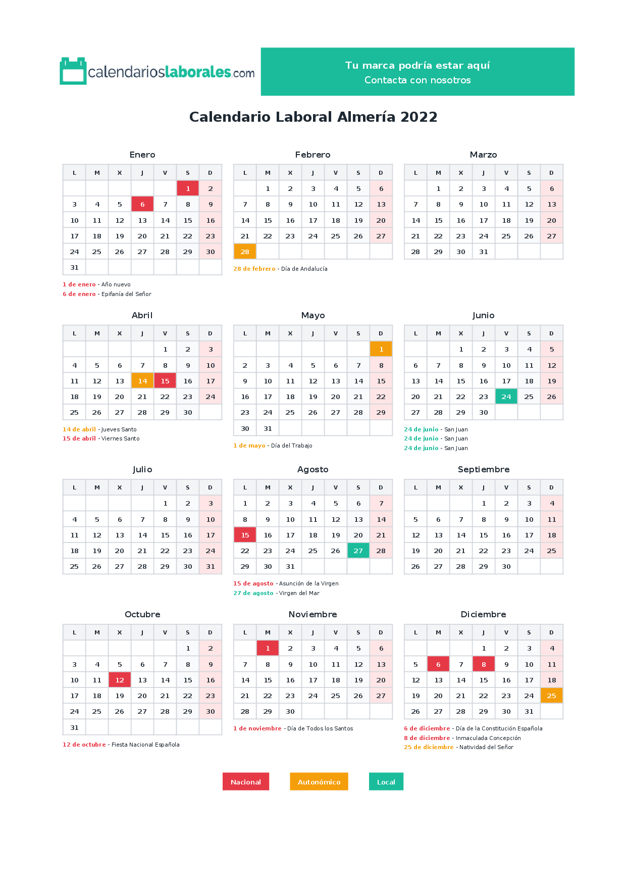 Calendario laboral Almería 2022