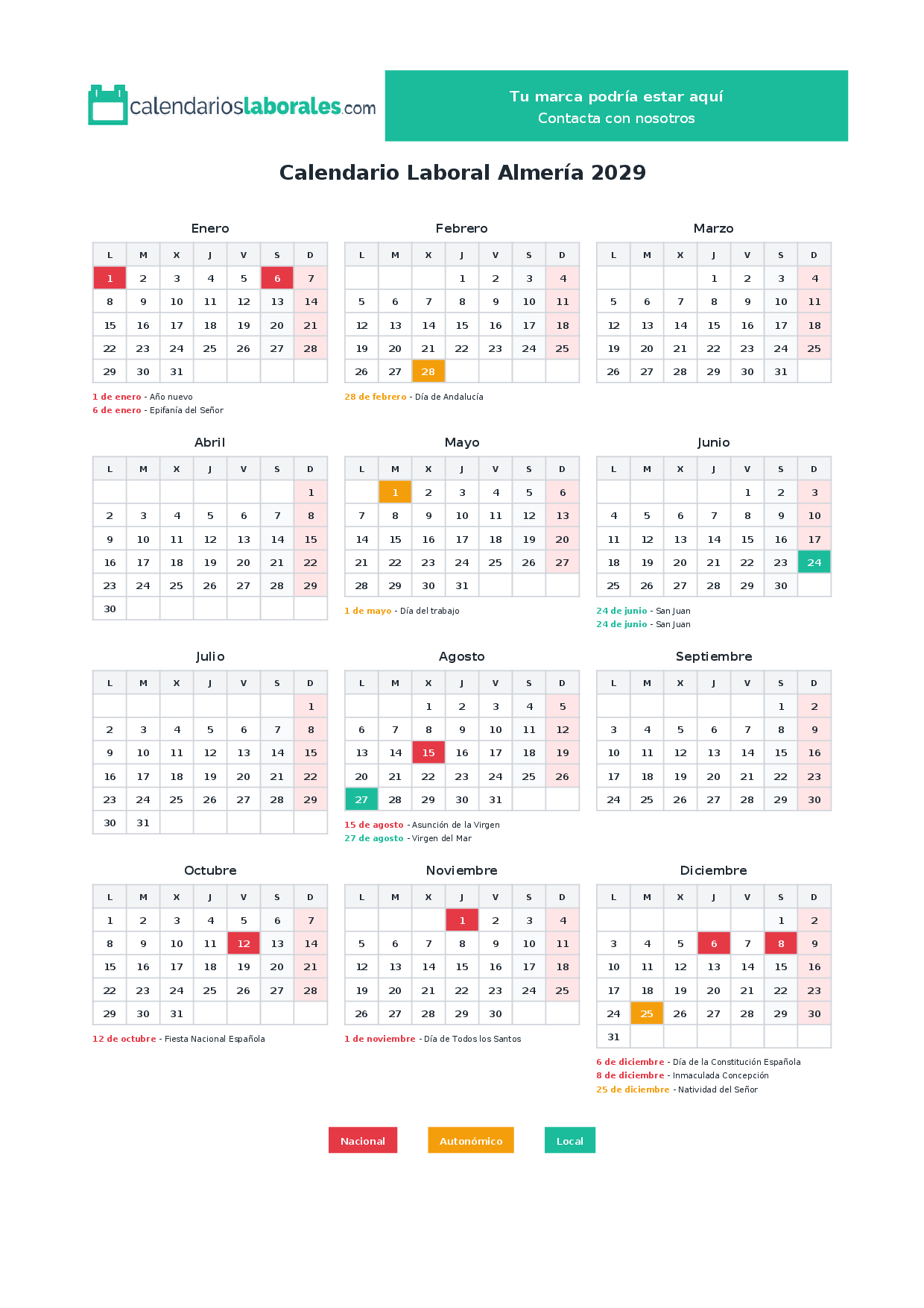 Calendario laboral Almería 2029
