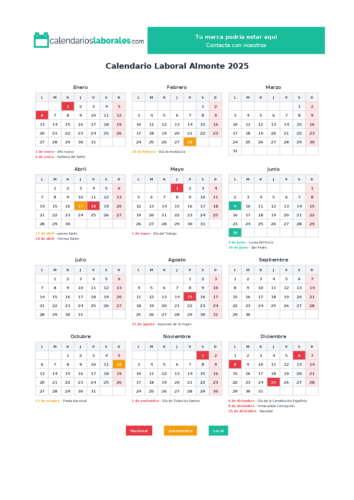 Calendario laboral Almonte 2025
