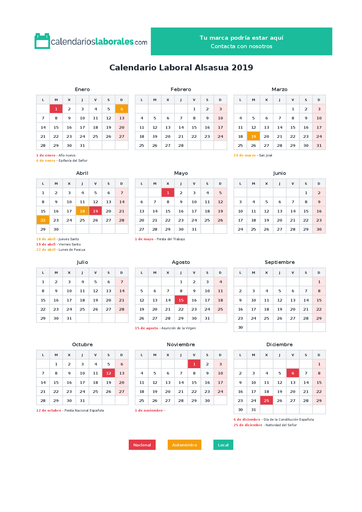 Calendario laboral Alsasua 2019