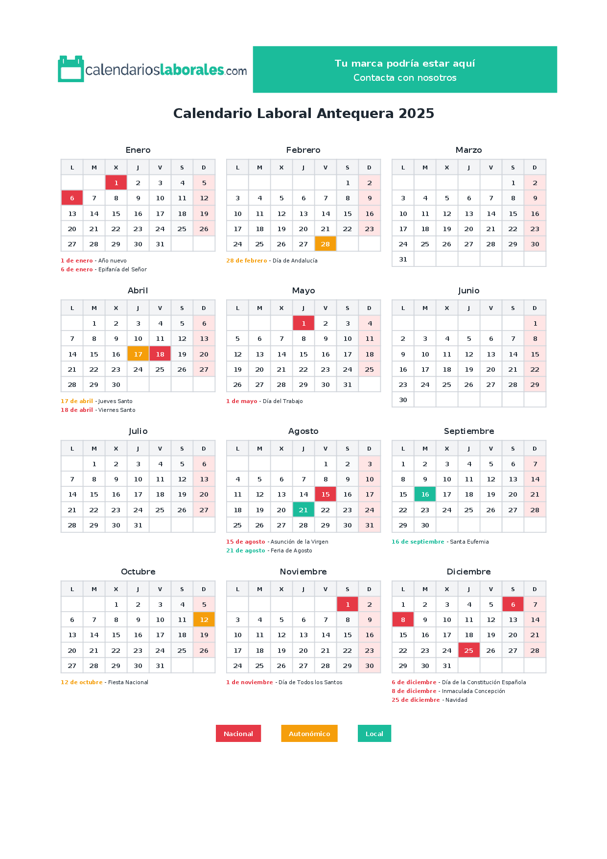 Calendario laboral Antequera 2025