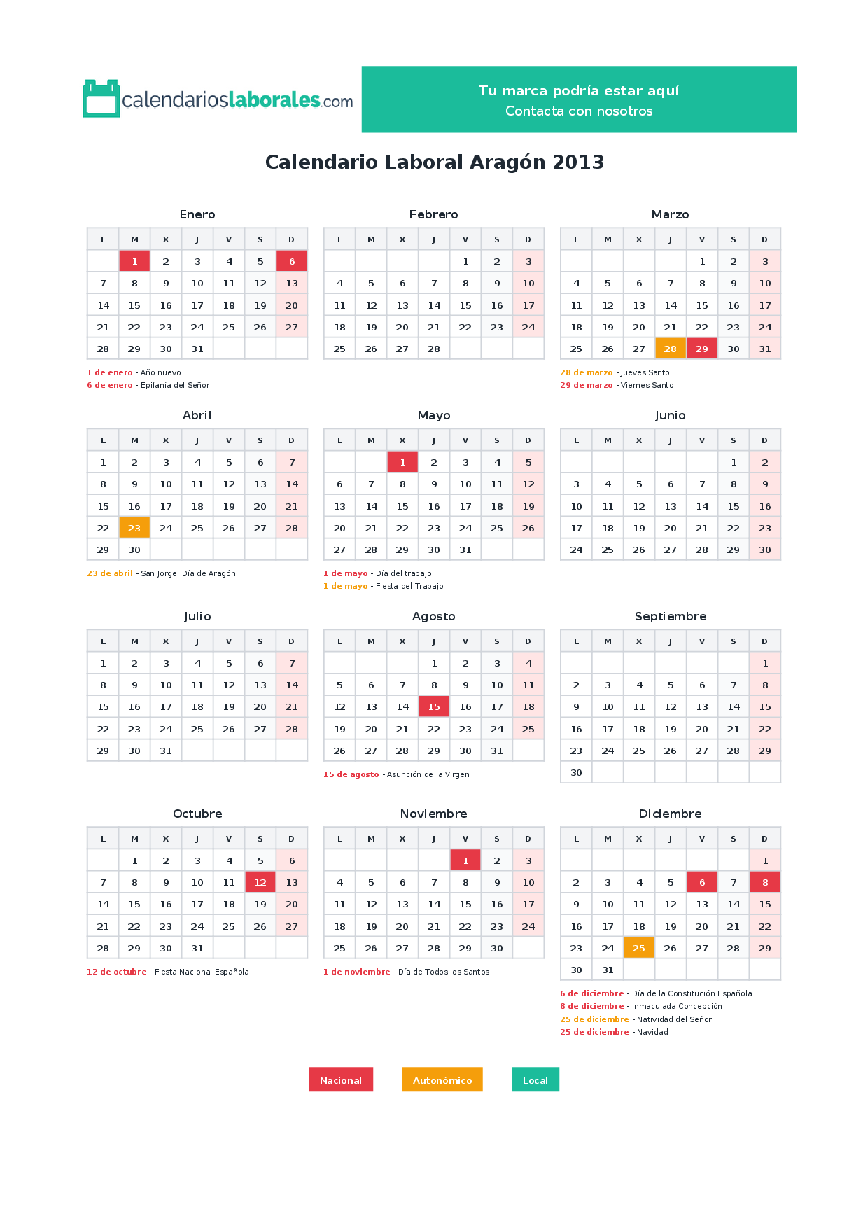 Calendario laboral Aragón 2013