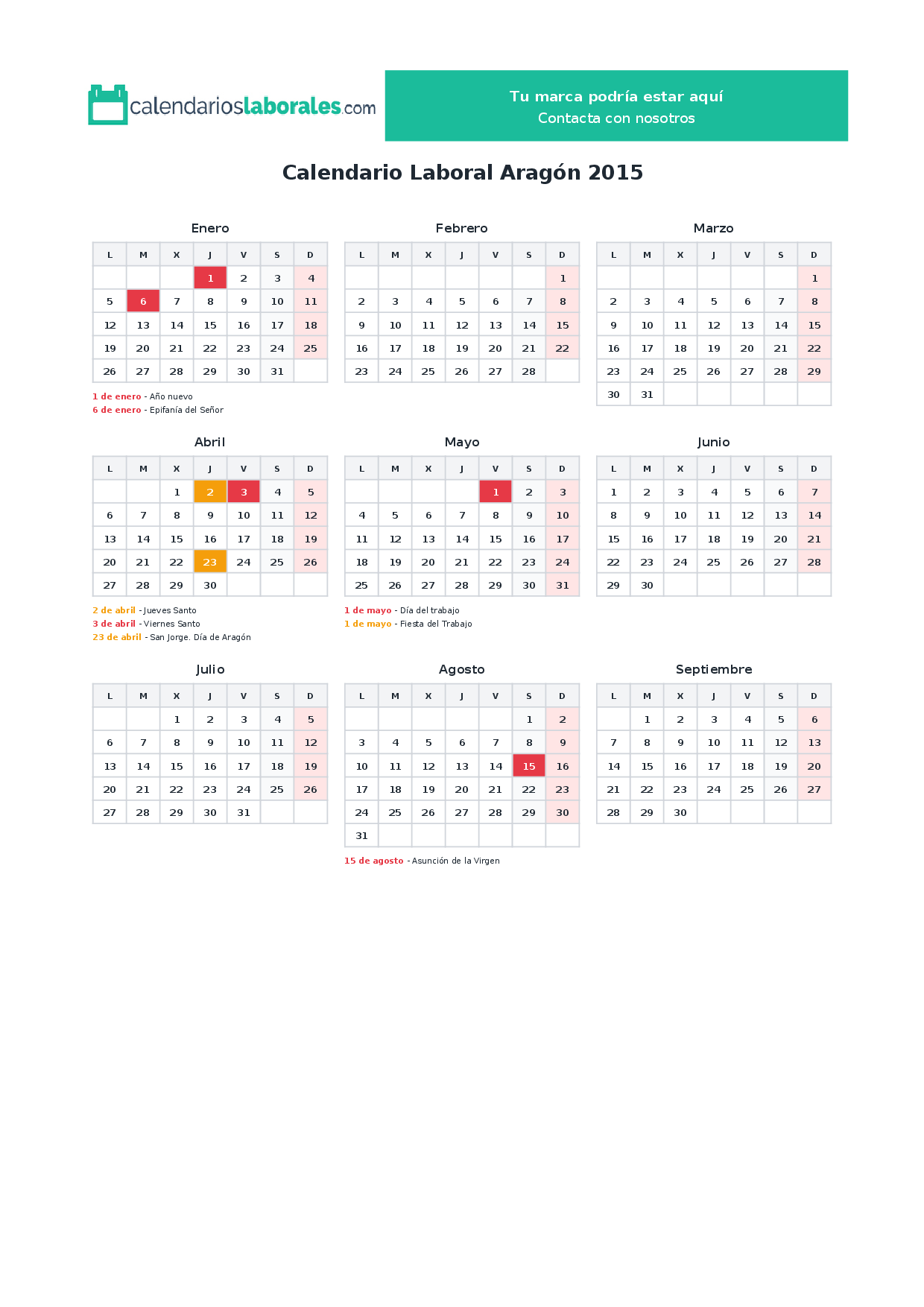 Calendario laboral Aragón 2015