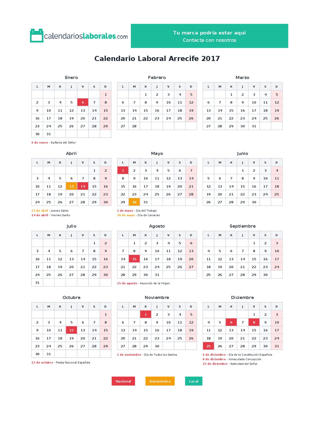 Calendario laboral Arrecife 2017