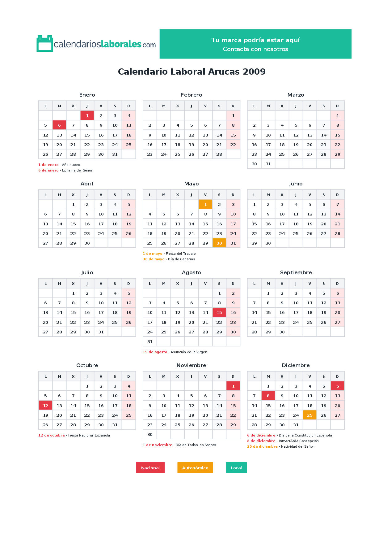 Calendario laboral Arucas 2009