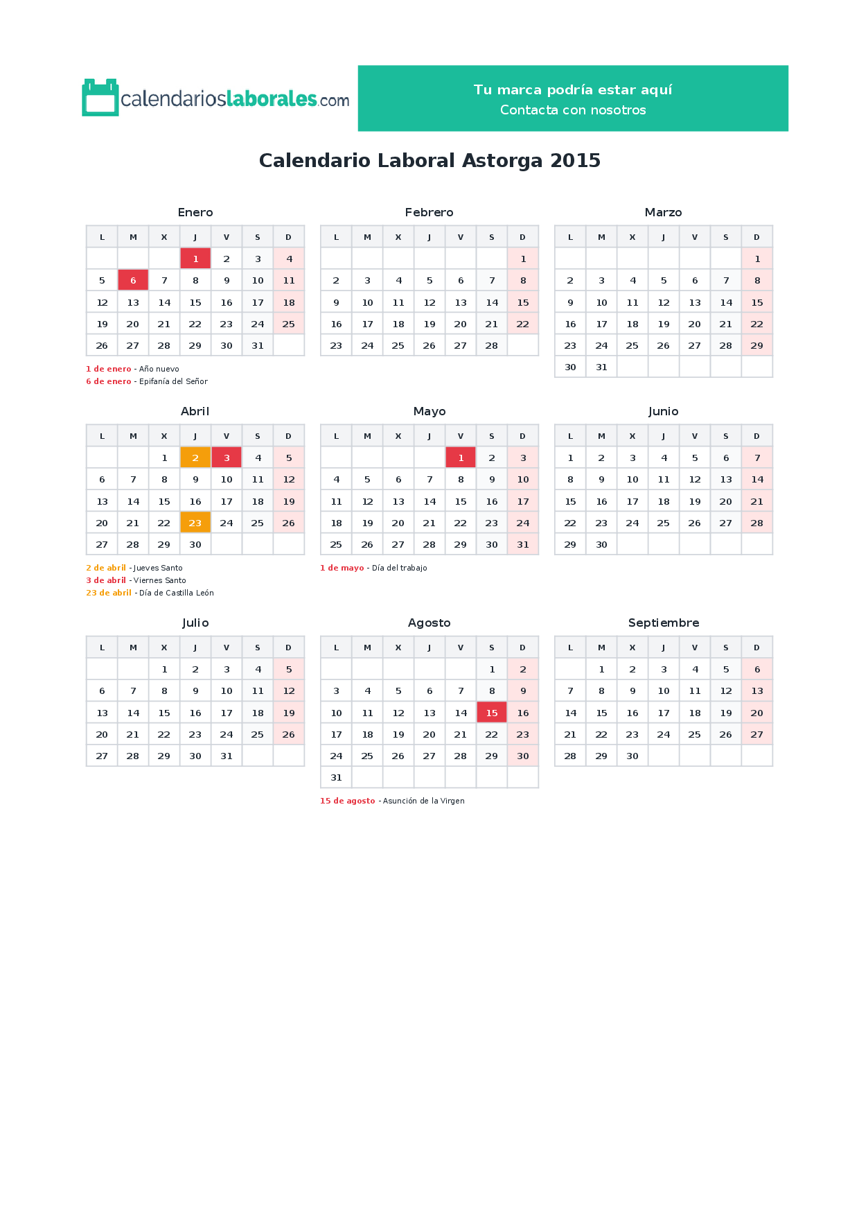 Calendario laboral Astorga 2015