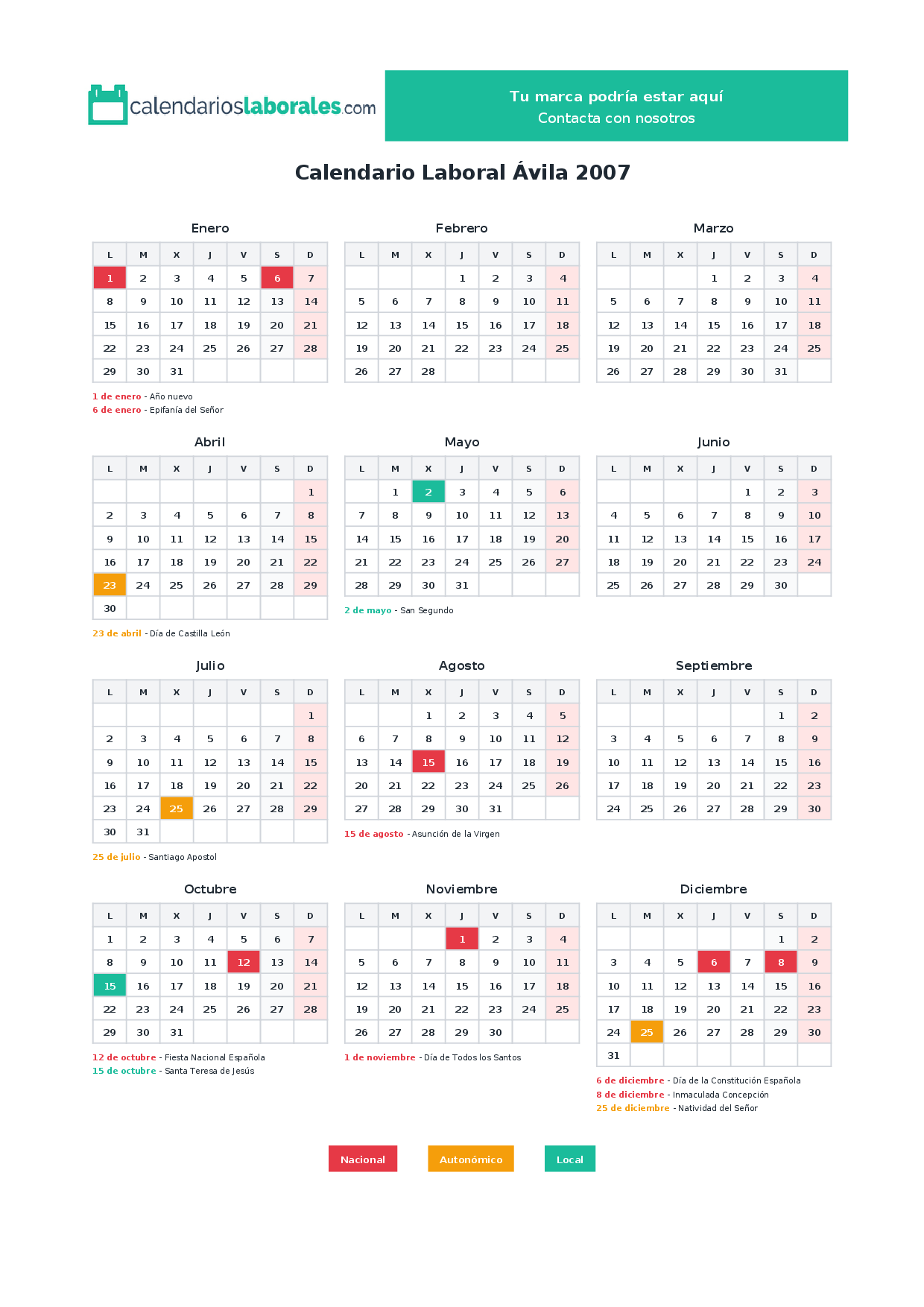 Calendario laboral Ávila 2007