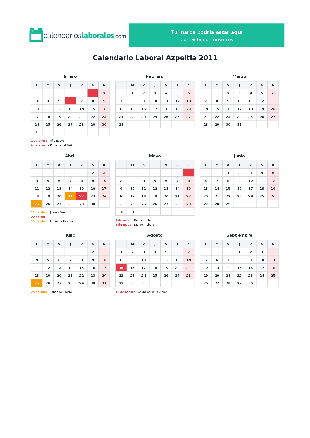 Calendario laboral Azpeitia 2011
