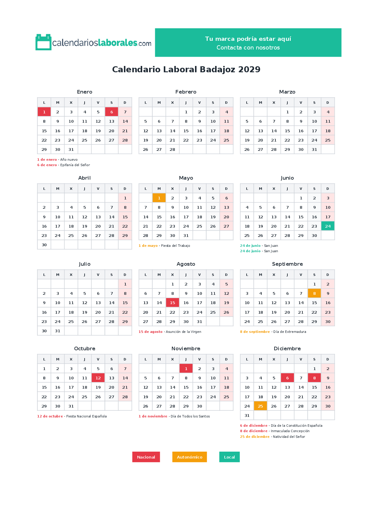 Preguntas frecuentes sobre el calendario laboral de Badajoz 2029