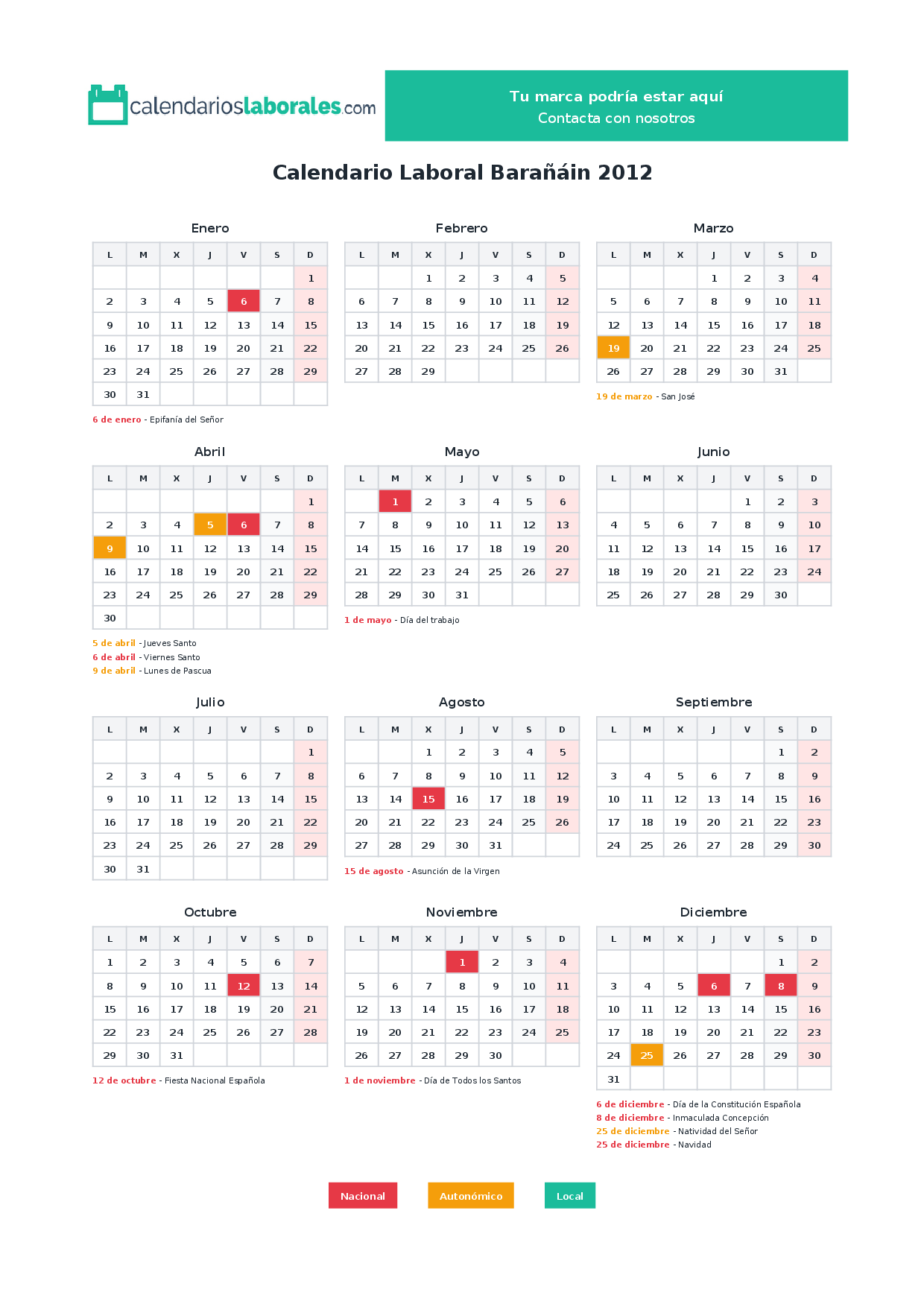 Calendario laboral Barañáin 2012