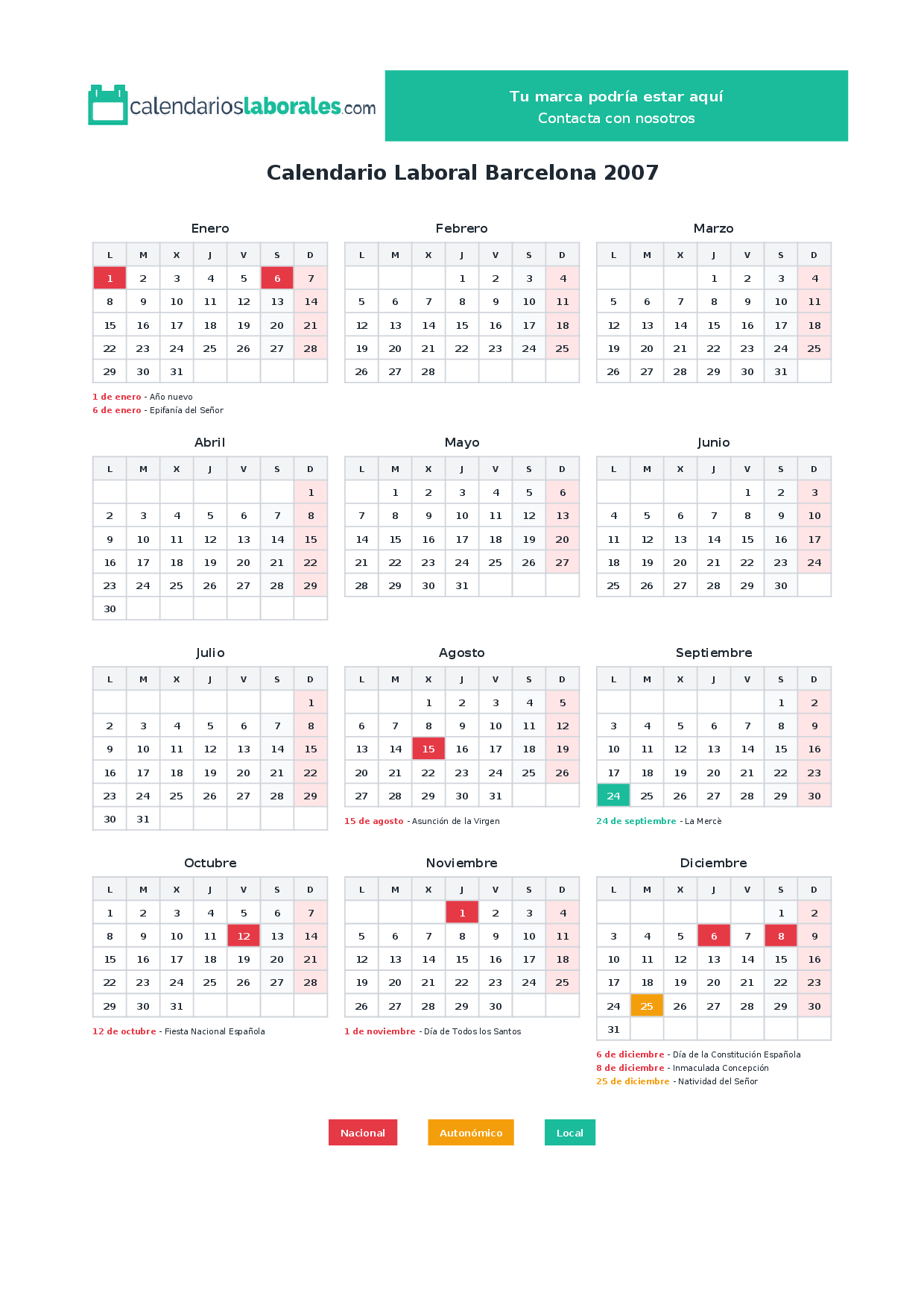 Calendario laboral Barcelona 2007