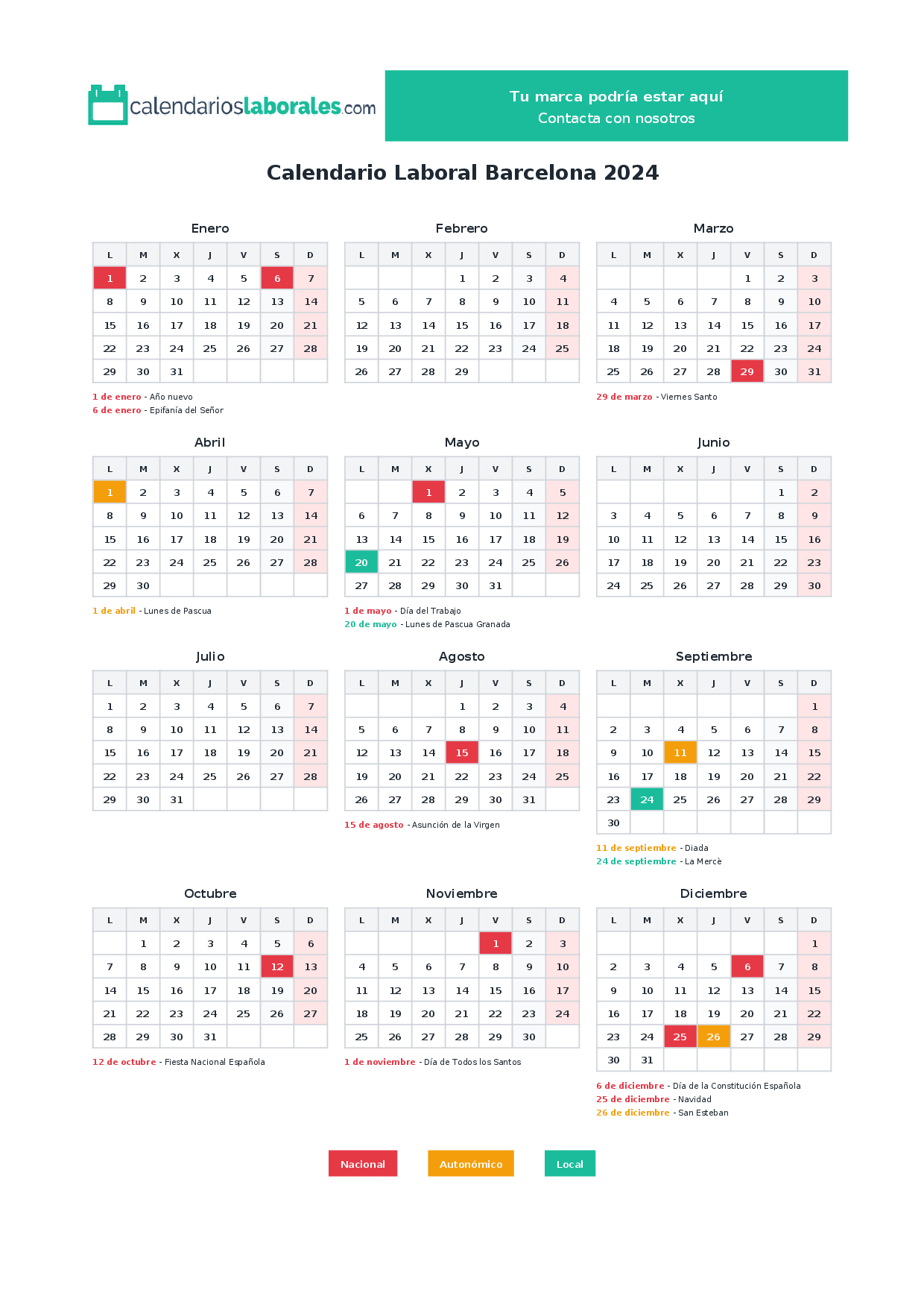 Calendario laboral Barcelona 2024