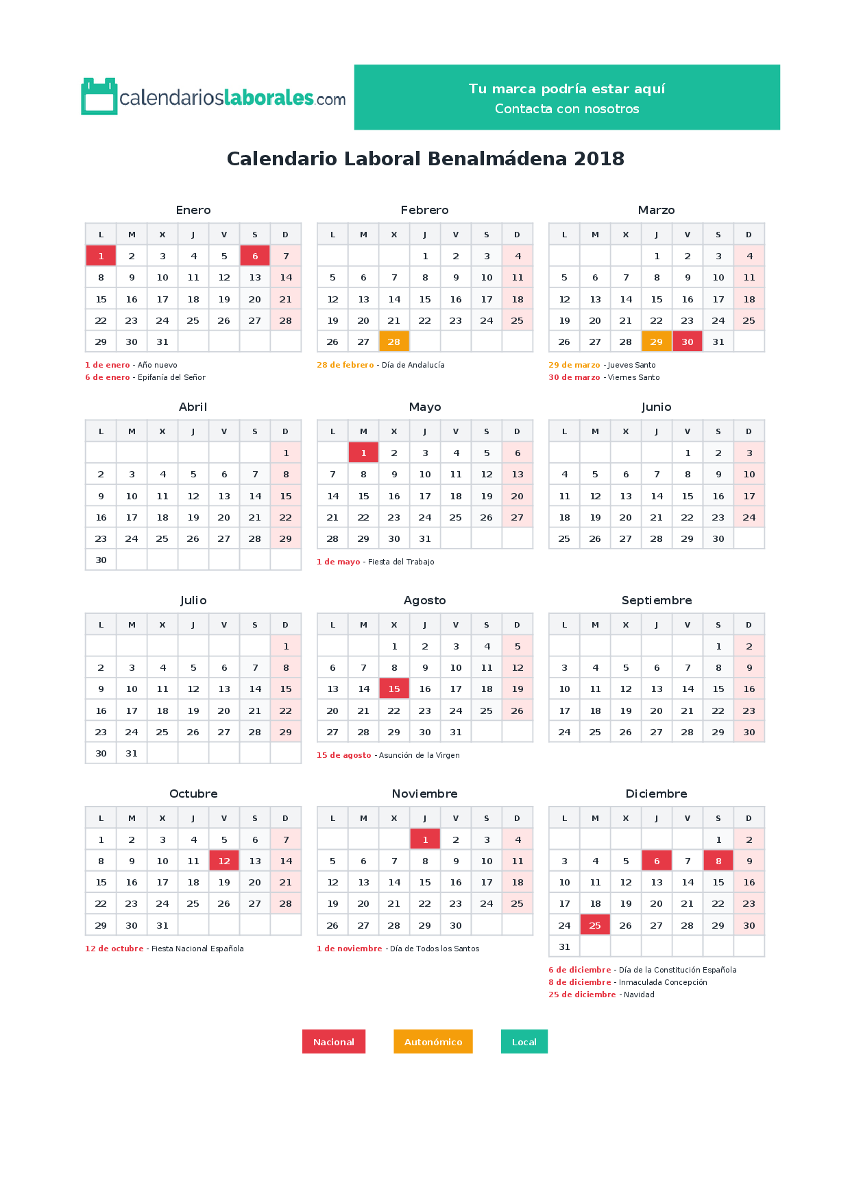 Calendario laboral Benalmádena 2018