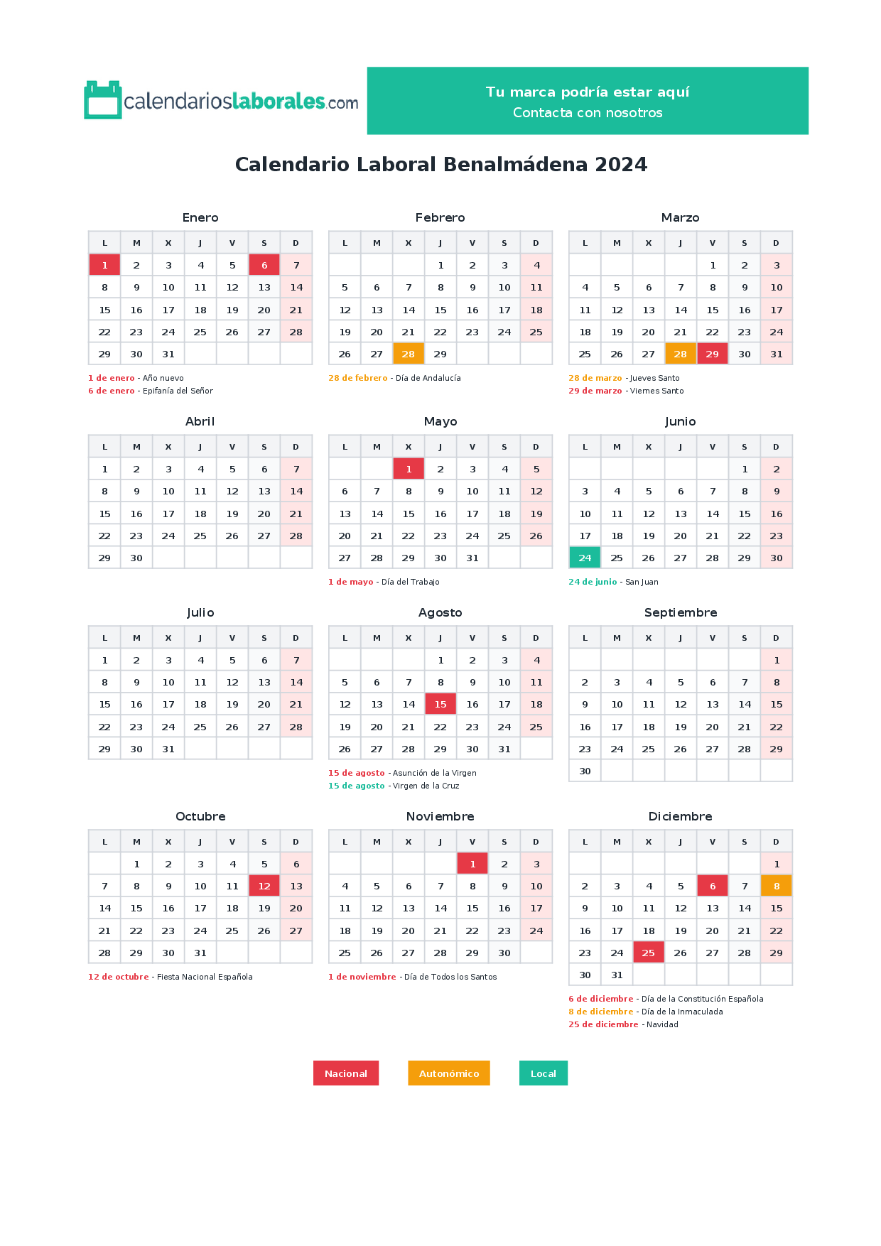Calendario laboral Benalmádena 2024