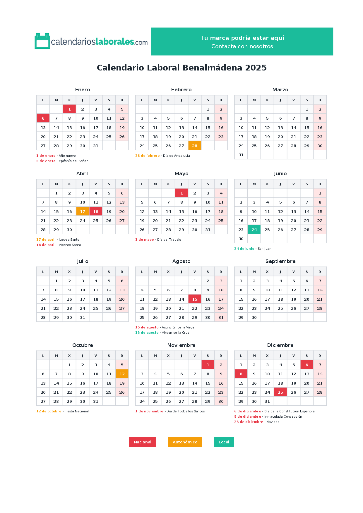 Puedes consultar también el calendario laboral de Málaga o el calendario autonómico de Andalucía para más información.