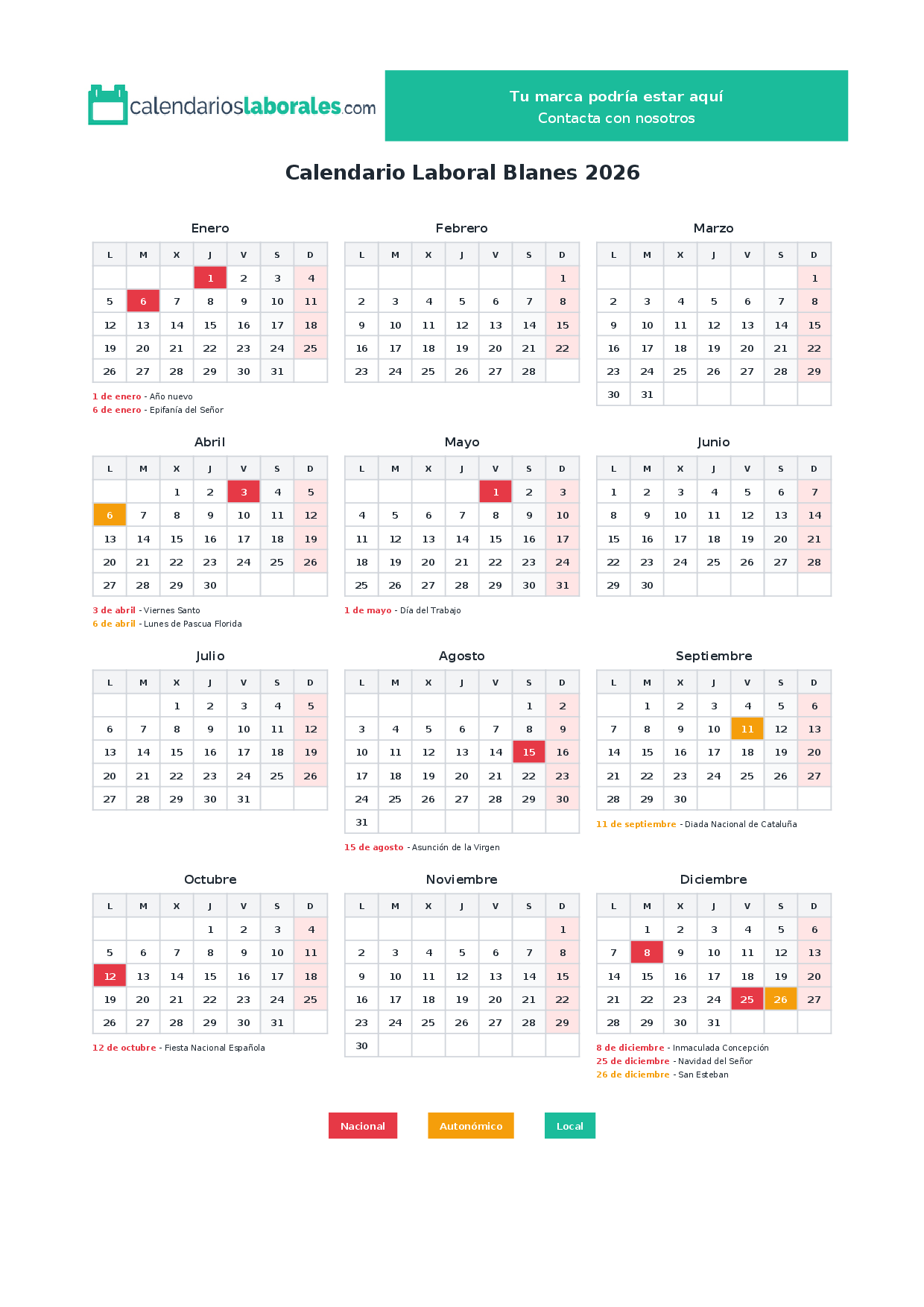 Calendario laboral Blanes 2026