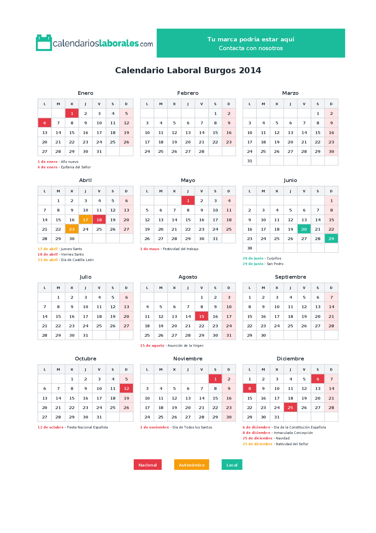 Calendario laboral Burgos 2014