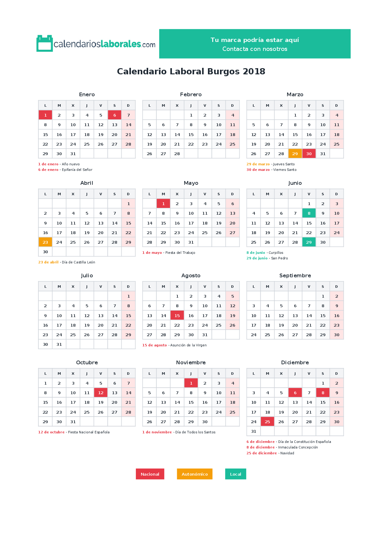 Calendario laboral Burgos 2018