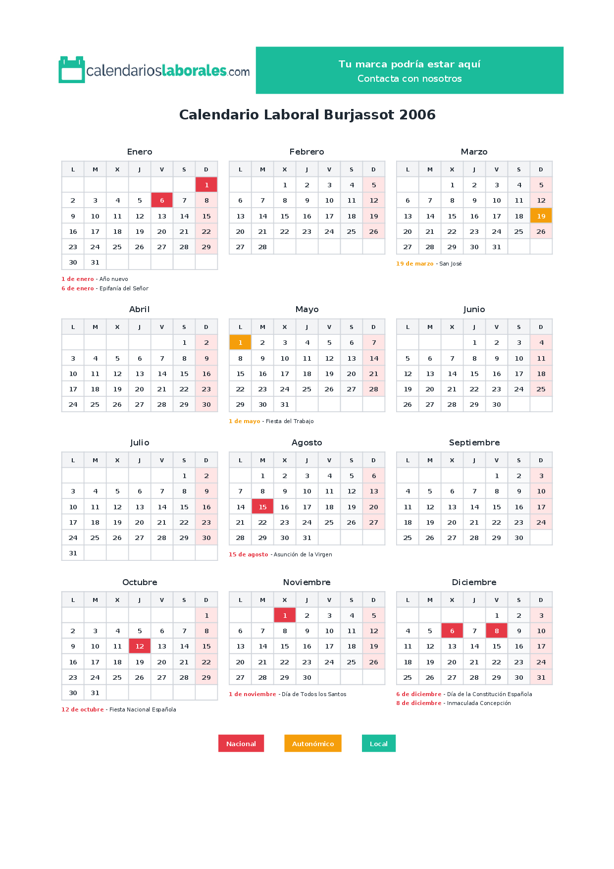 Calendario laboral Burjassot 2006