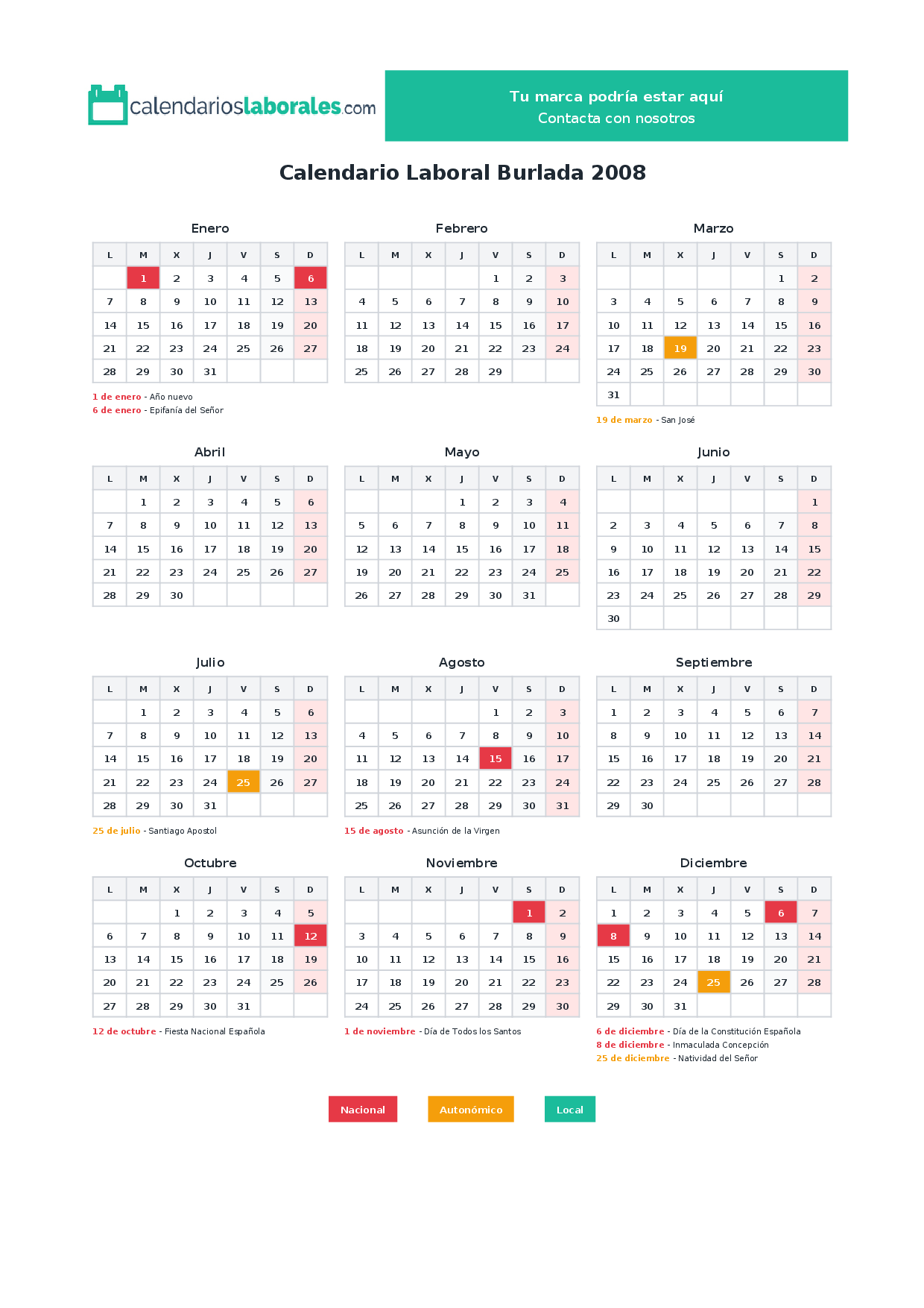Calendario laboral Burlada 2008