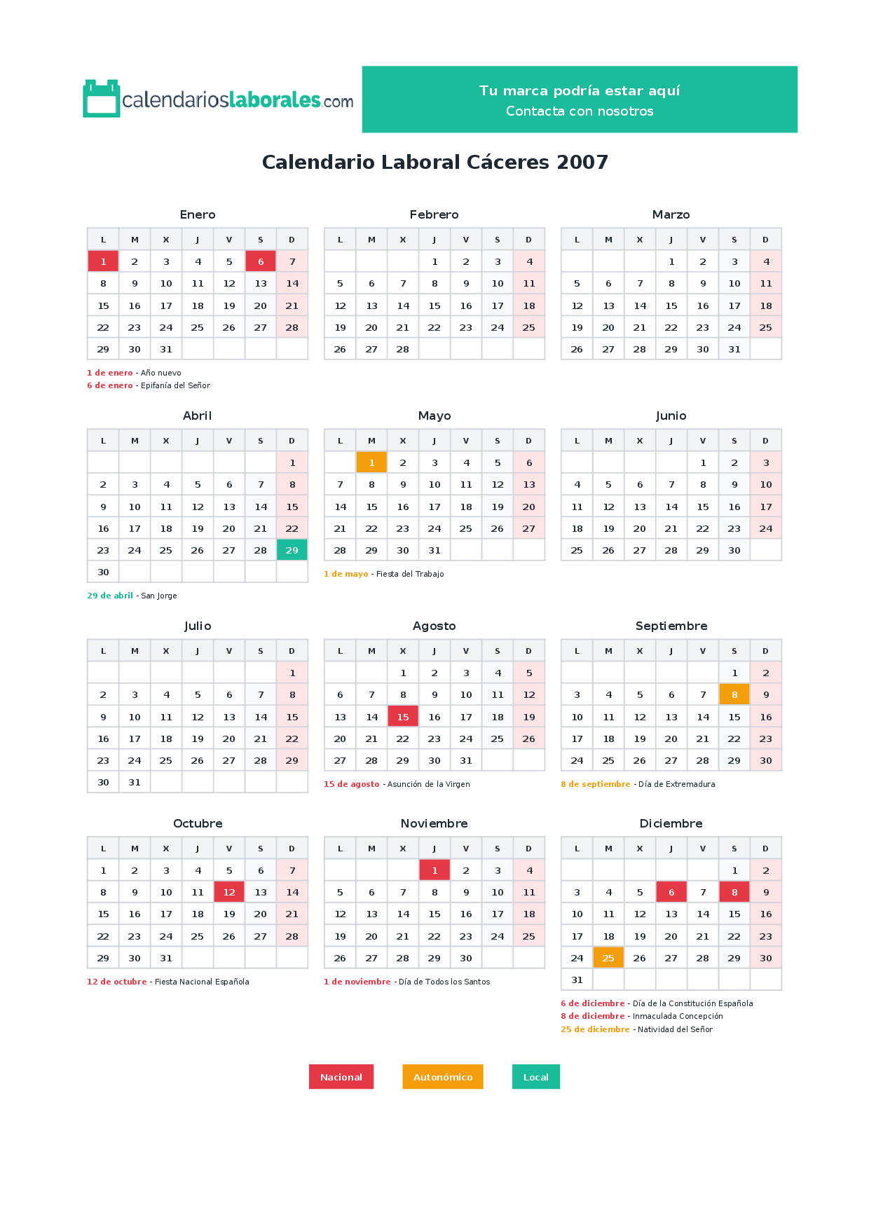 Calendario laboral Cáceres 2007