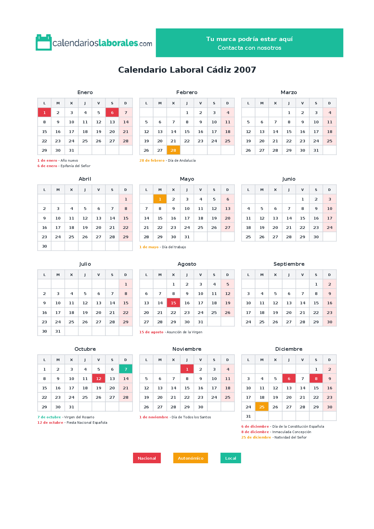 Calendario laboral Cádiz 2007
