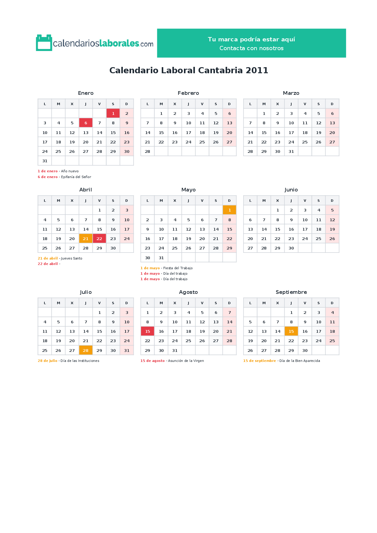 Calendario laboral Cantabria 2011